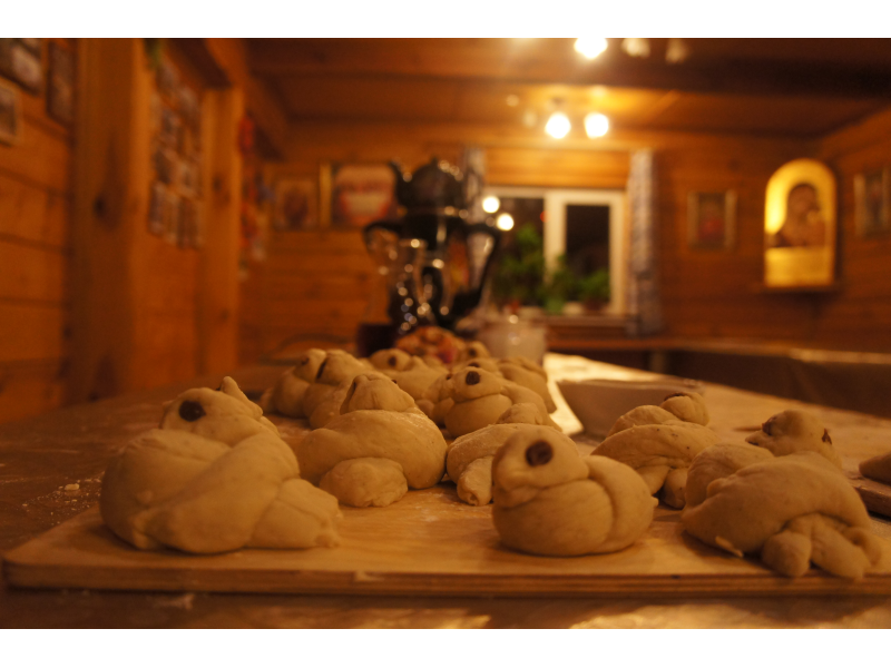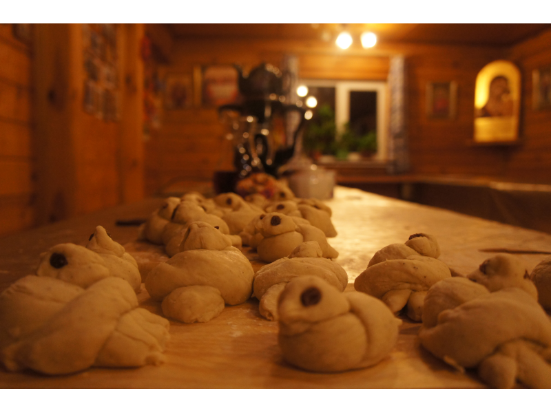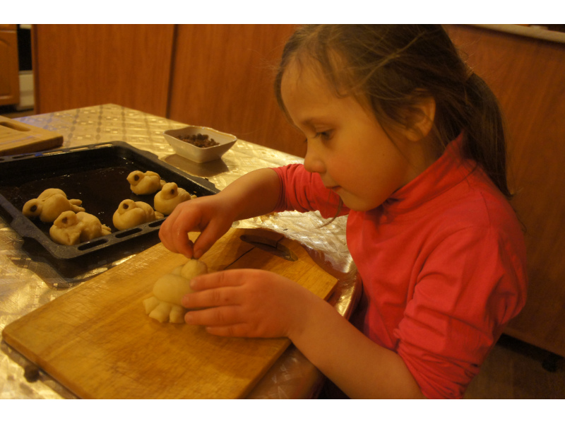 В Великий пост на Руси хозяйки пекли «жаворонков». Это булочки-птички из постного теста, иногда вылепленные вместе с гнездами и яичками. Жаворонков обычно пекли всей семьей в день памяти 40 мучеников, в Севастийском озере мучившихся, который празднуется 22 марта по новому стилю.