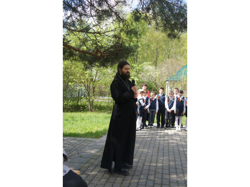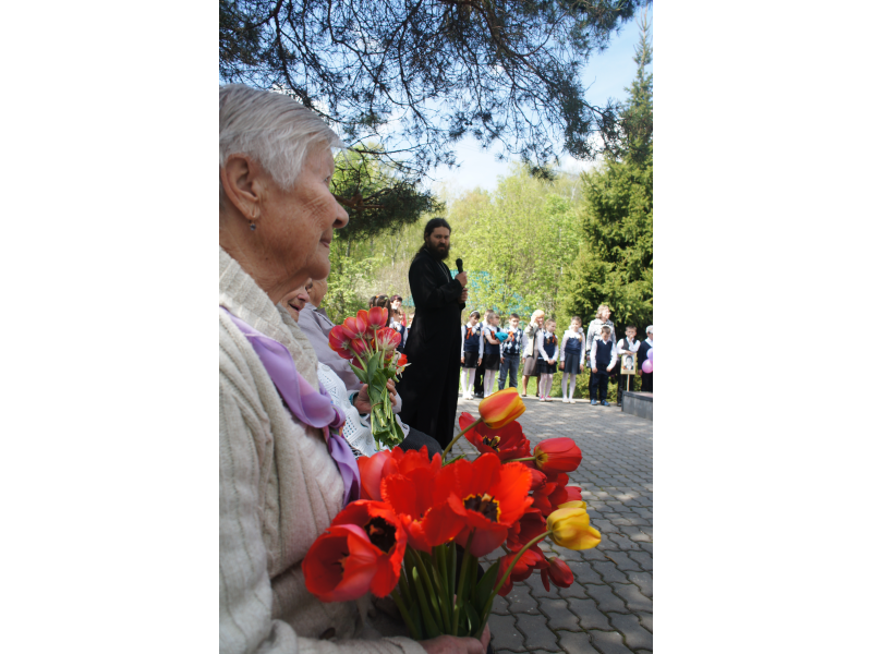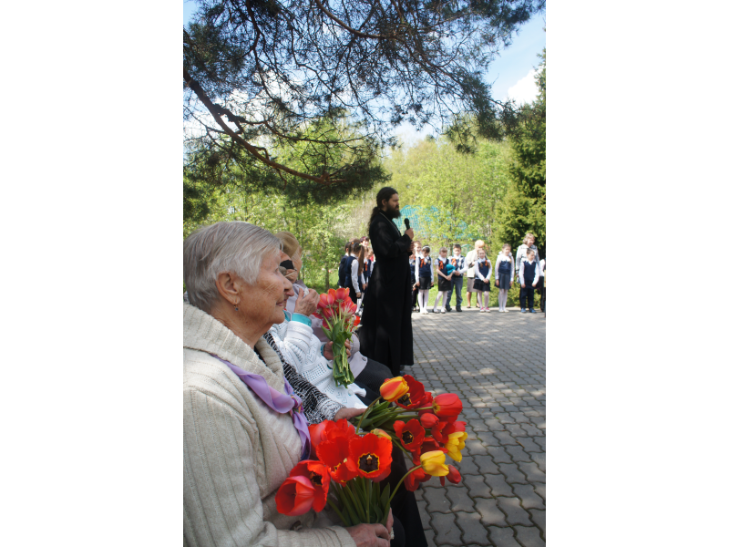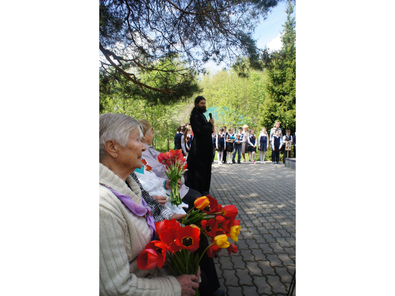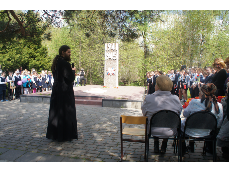 6 мая отец Андрей был приглашен на празднование Дня Великой Победы в с. Проводник. Преподаватели и учащиеся Проводниковской школы возложили венки к памятнику Герою России - Маслову Александру Спиридоновичу. Батюшка обратился с вступительным словом и поздравлениями к ветеранам.