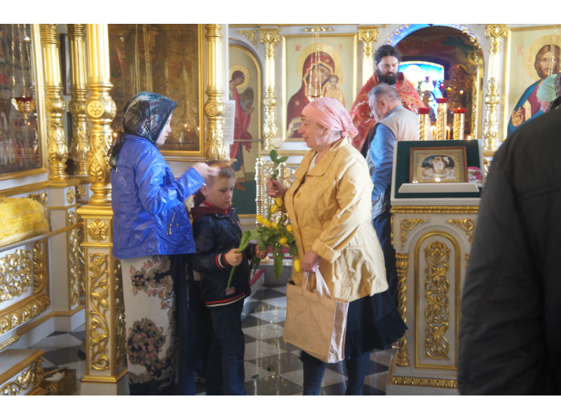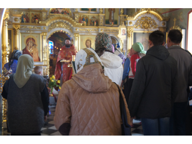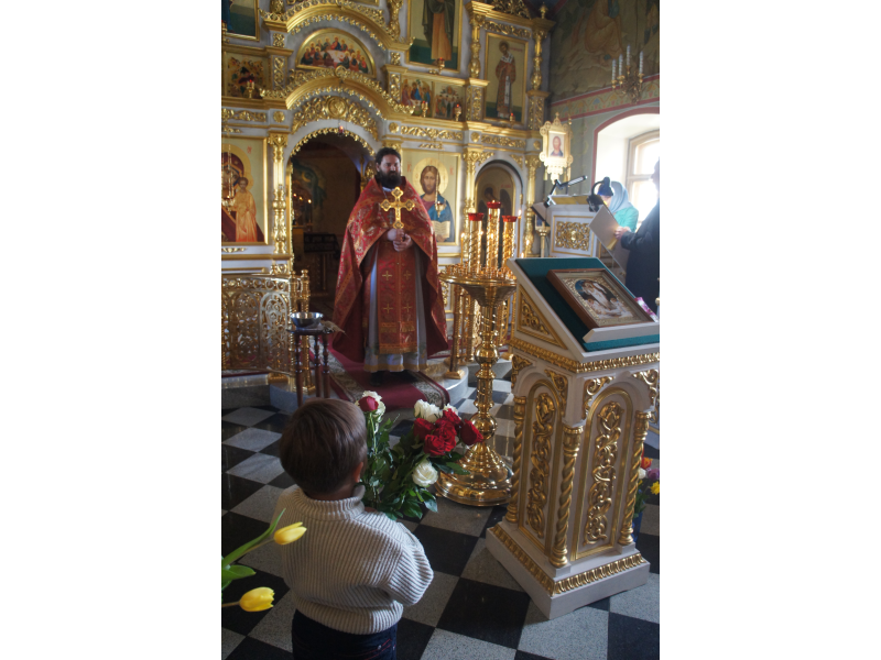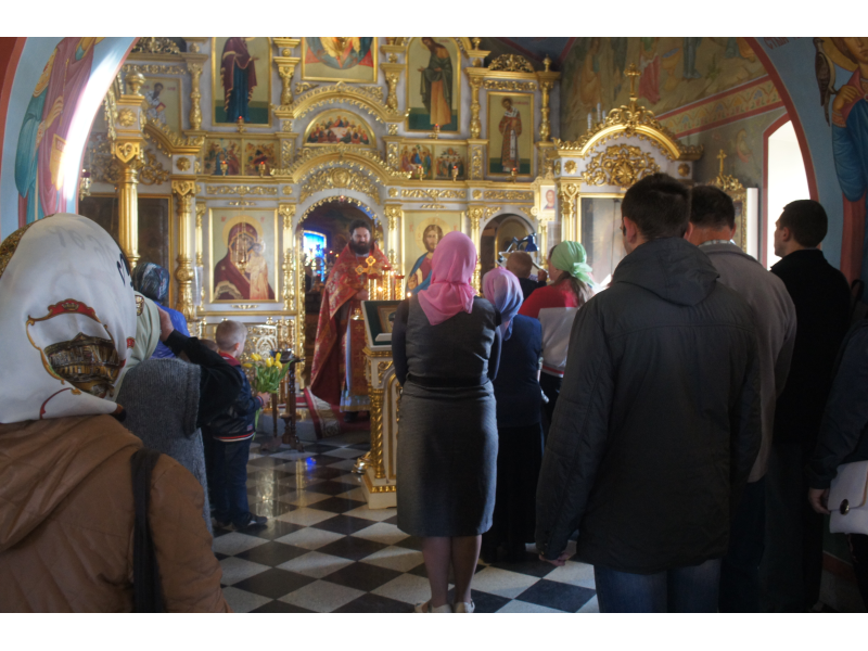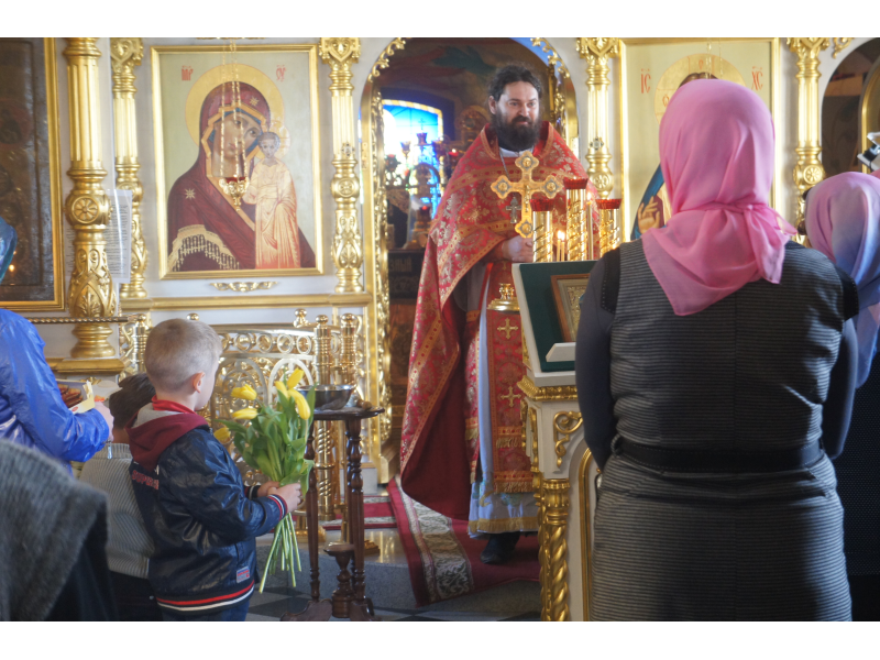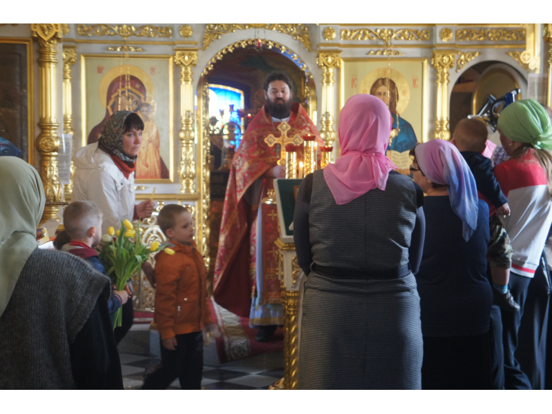 В день Жен Мироносиц в храме, после Божественной Литургии отец Андрей поздравил всех прихожанок со Светлым Праздником.