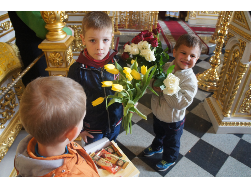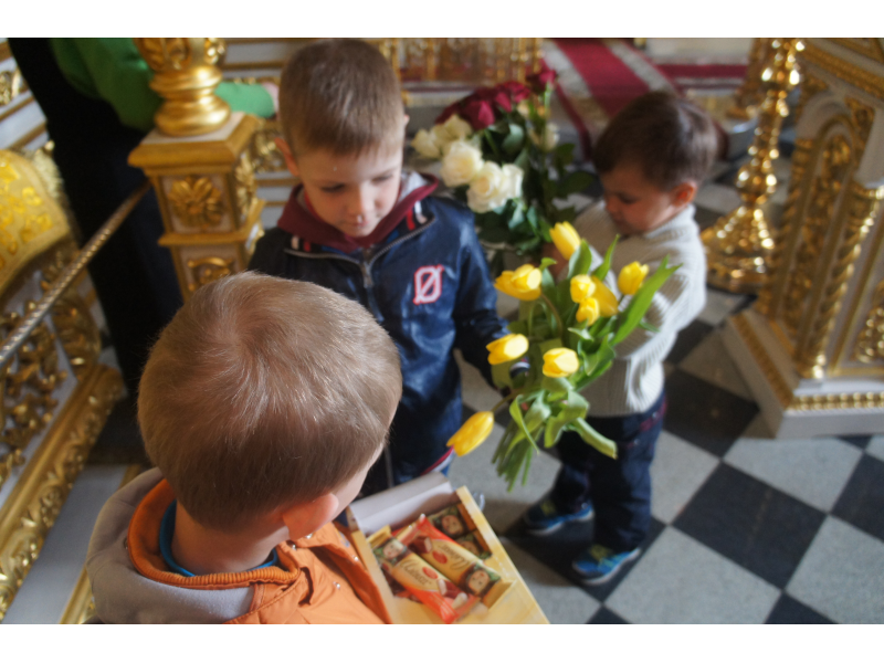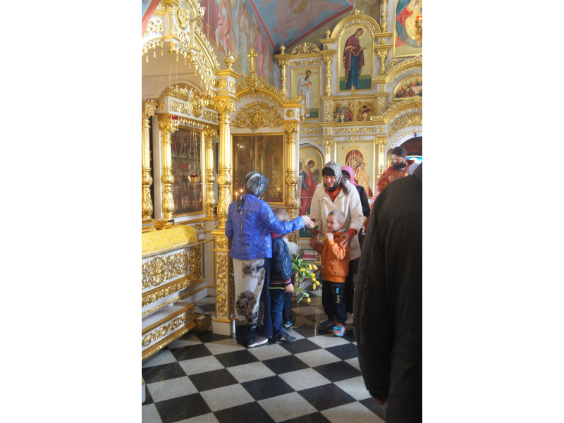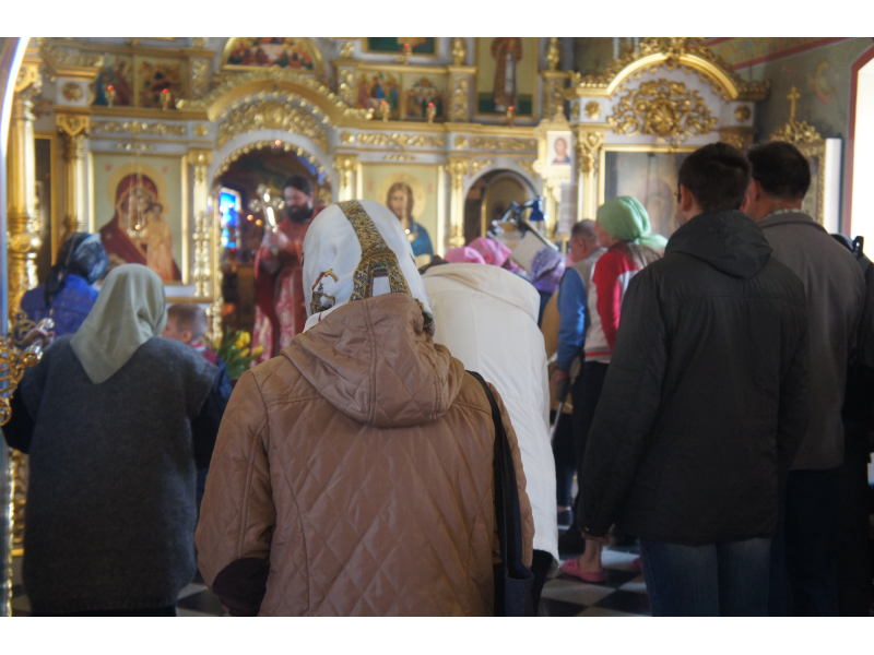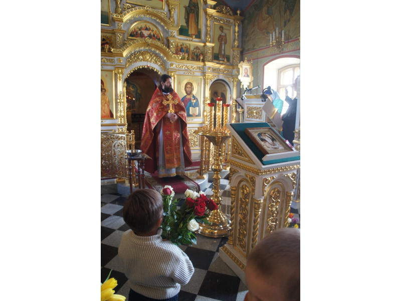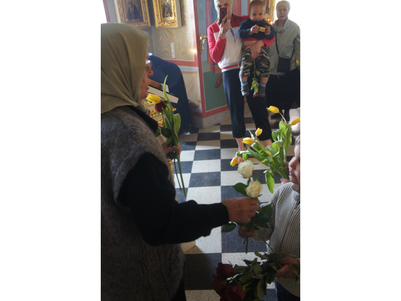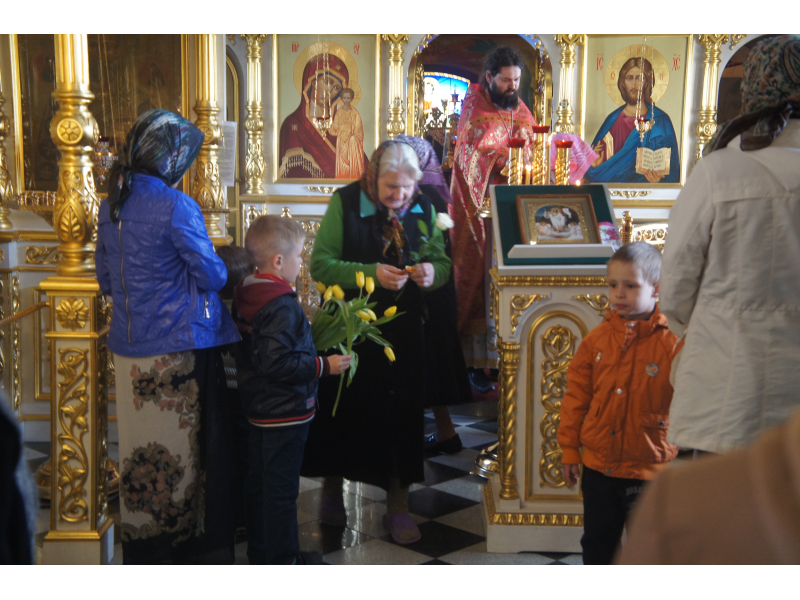 В день Жен Мироносиц в храме, после Божественной Литургии отец Андрей поздравил всех прихожанок со Светлым Праздником.