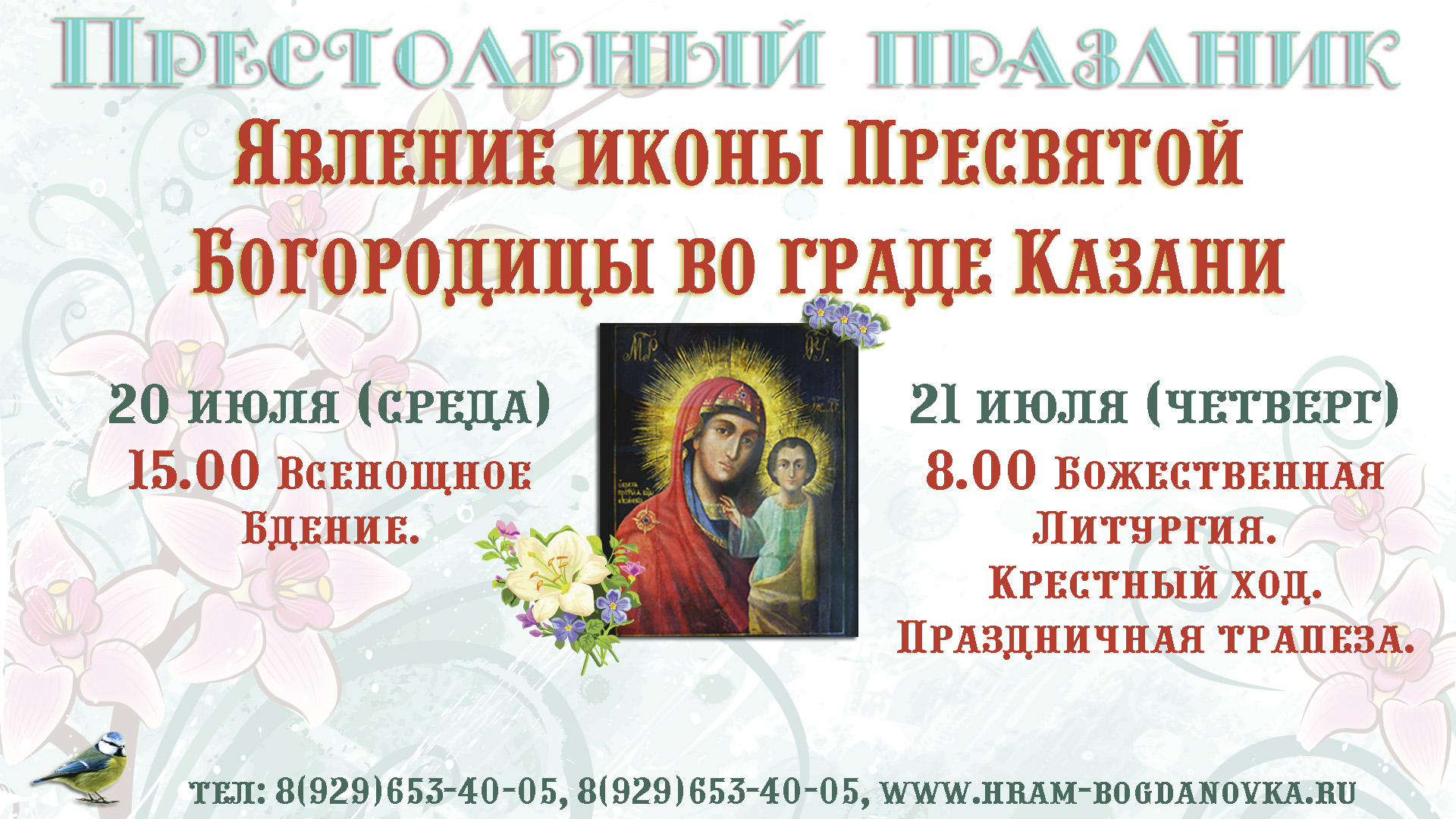 Приглашаем всех на Престольный праздник в Казанский храм д. Богдановка!