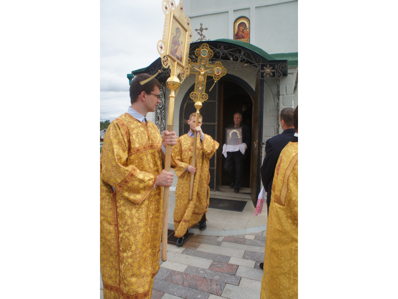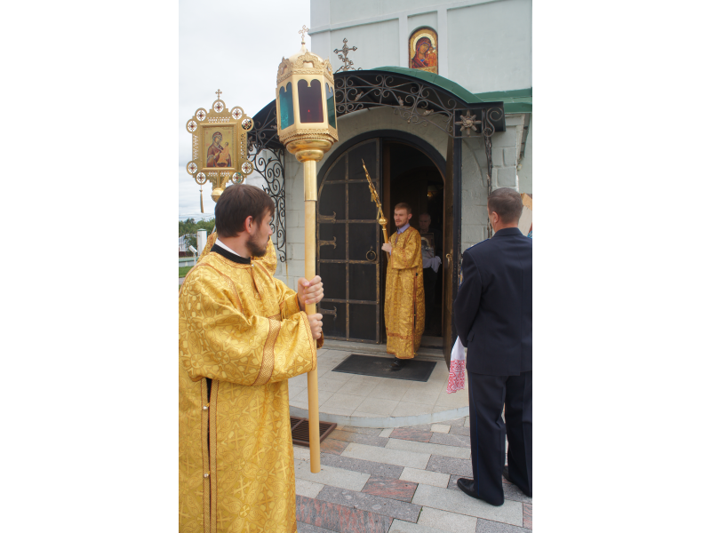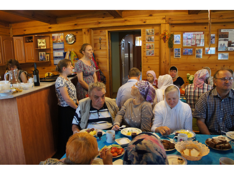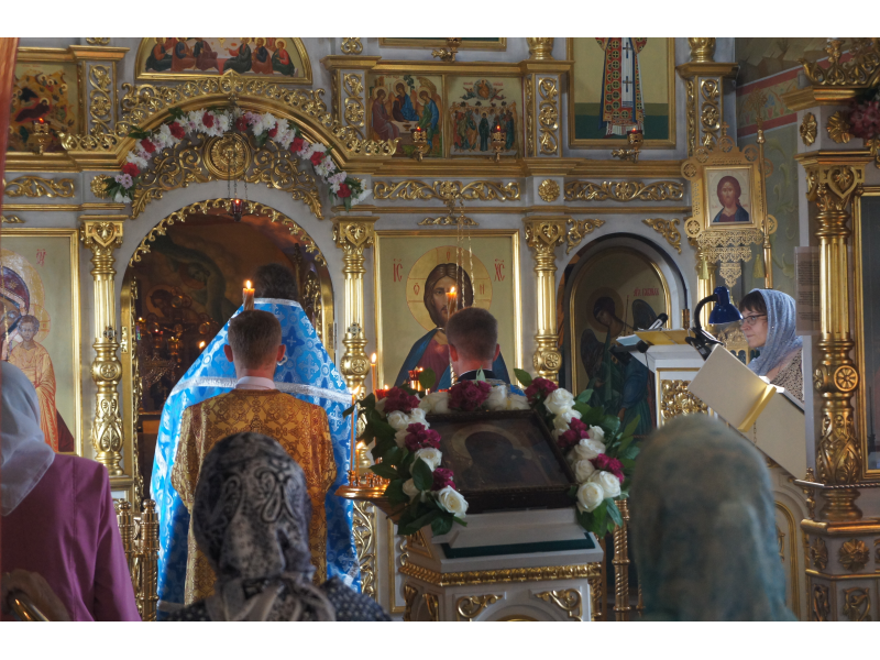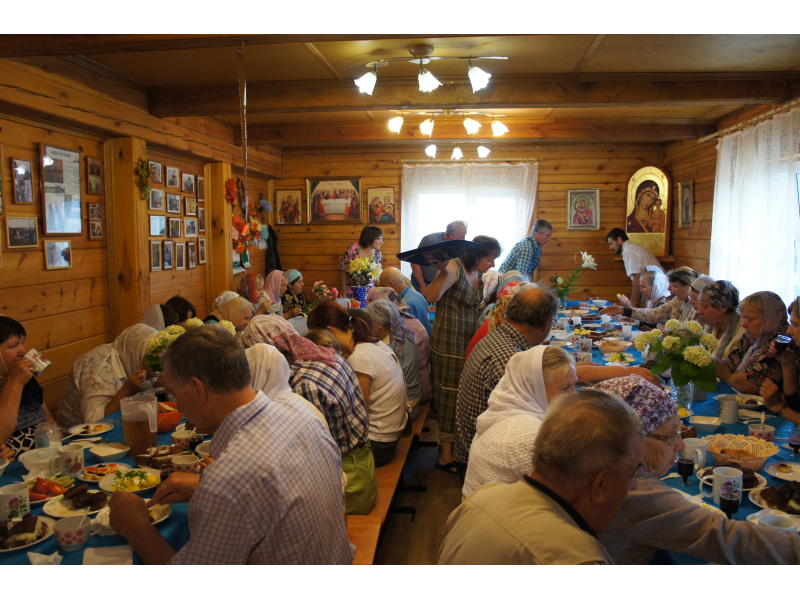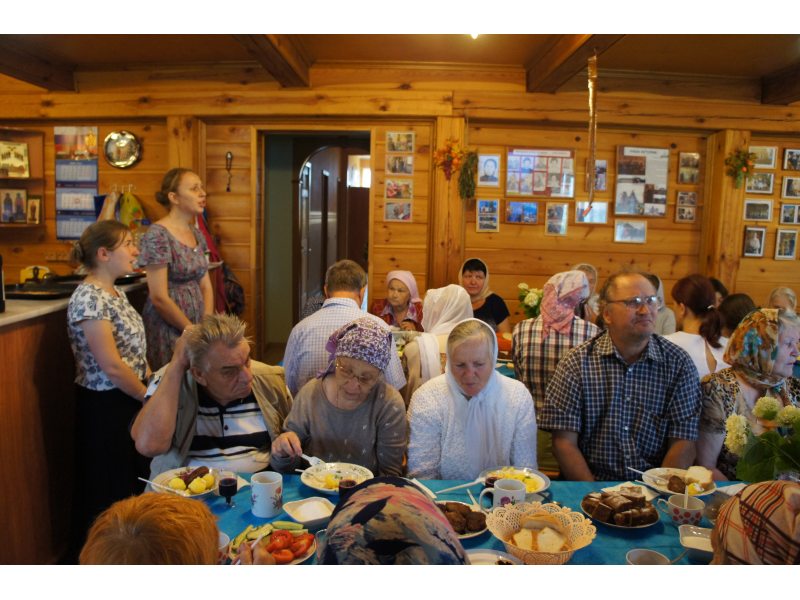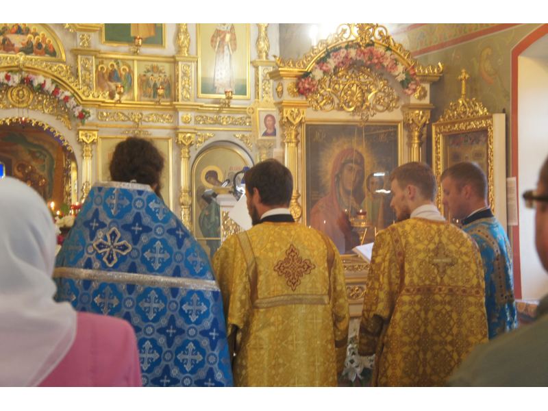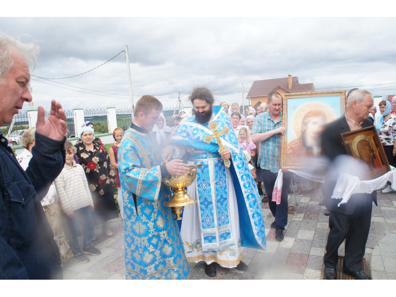 После литургии был совершен крестный ход с иконой Казанской Божией Матери и отслужен благодарственный молебен. Духовно напитавшись, прихожане отправились на трапезу подкрепить свои силы, и насладиться духовным пением под аккомпанемент скрипки.