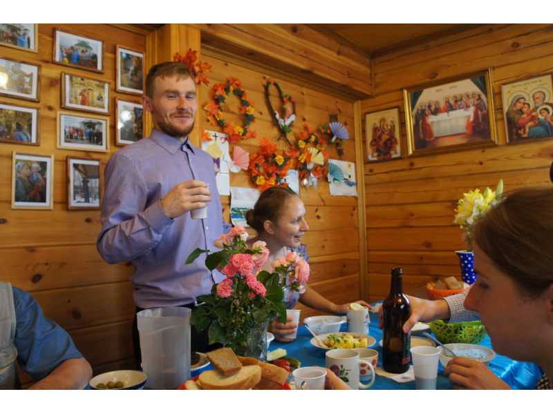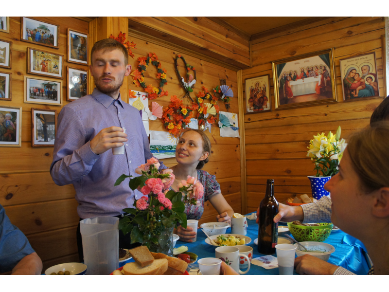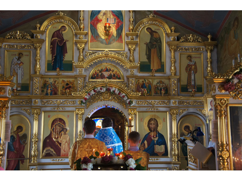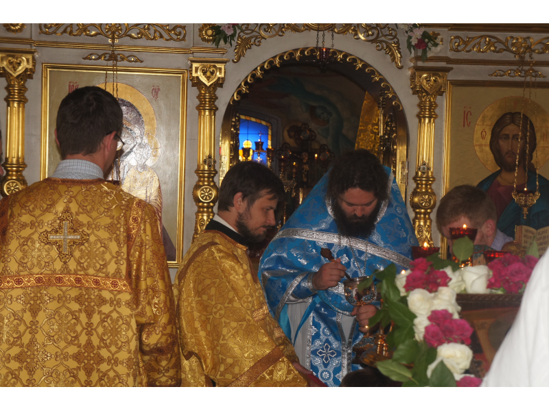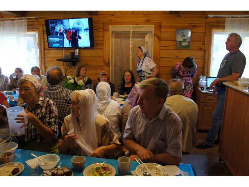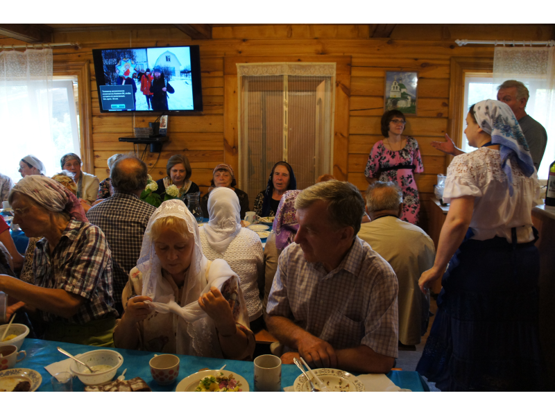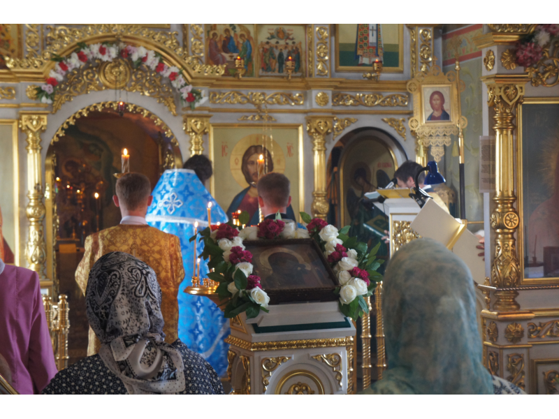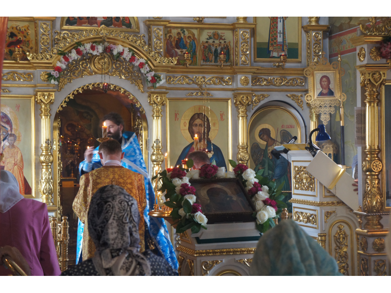 После литургии был совершен крестный ход с иконой Казанской Божией Матери и отслужен благодарственный молебен. Духовно напитавшись, прихожане отправились на трапезу подкрепить свои силы, и насладиться духовным пением под аккомпанемент скрипки.