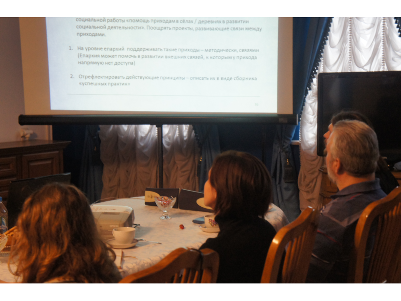 2 ноября супруга настоятеля Казанского храма д. Богдановка - Зекунова Л.А., приняла участие в дискуссии, в конференц-зале Отдела по церковной благотворительности и социальному служению, под председательством епископа Пантелеимона, на встрече с социологами ПСТГУ, на тему: Социальная работа прихода в малом городе / сельской местности: «не-проектные» способы действия.
