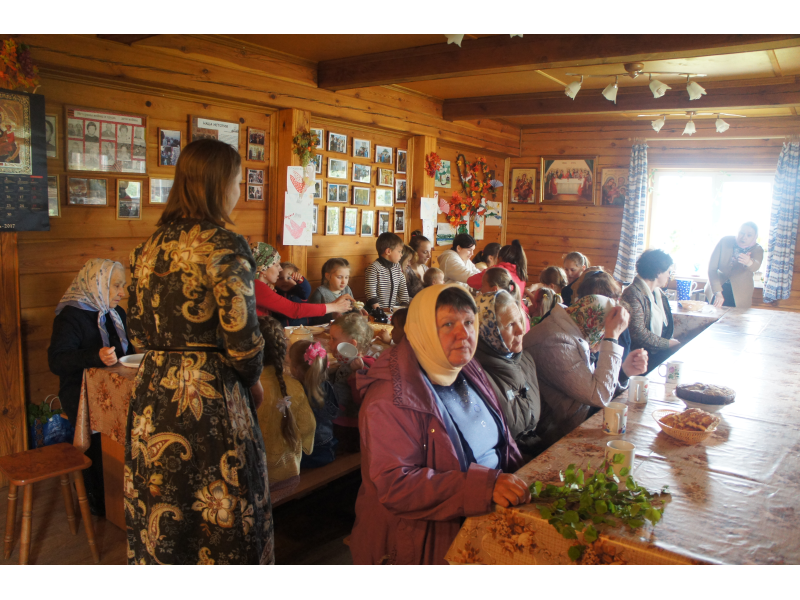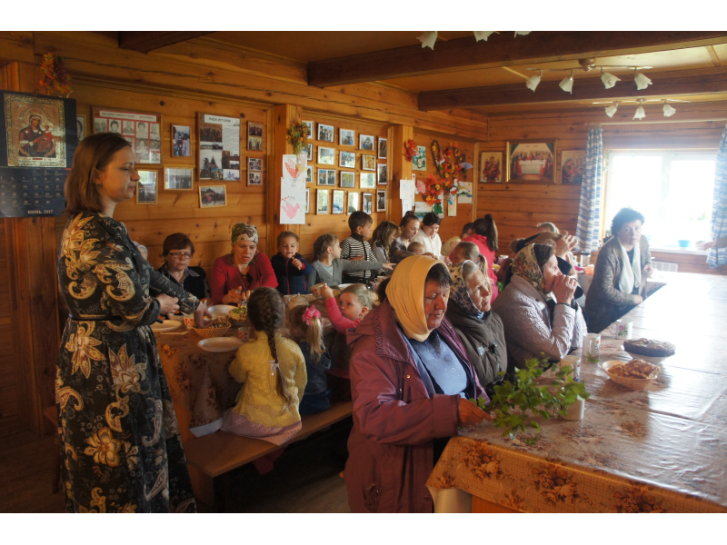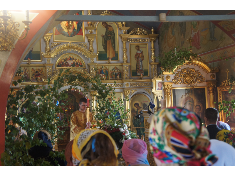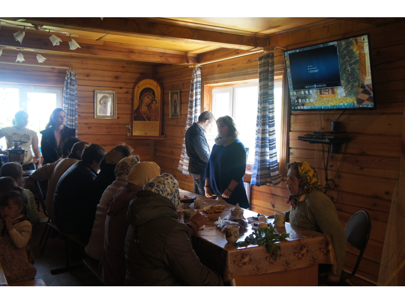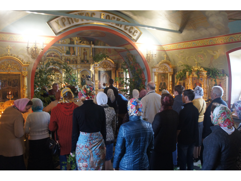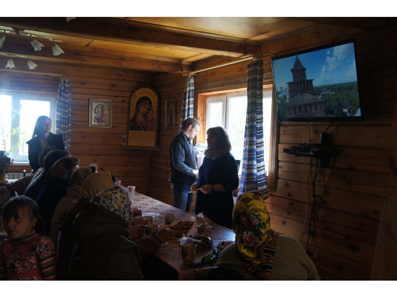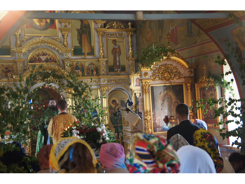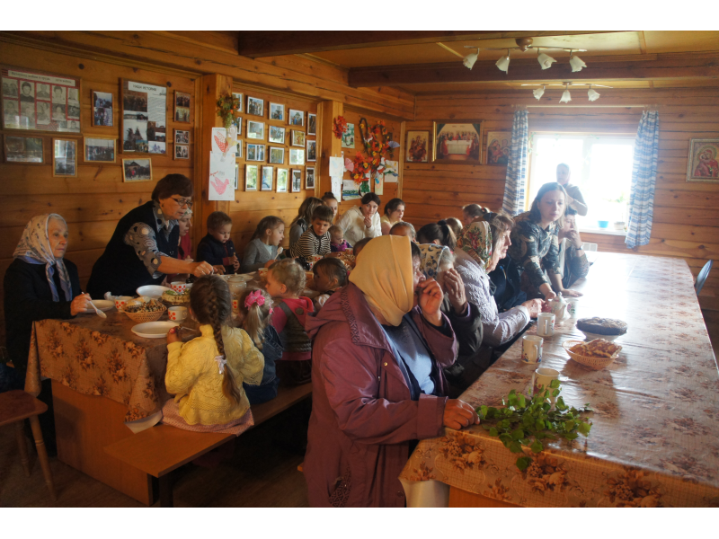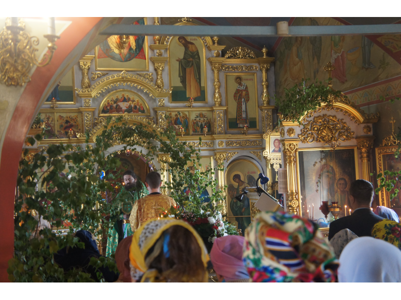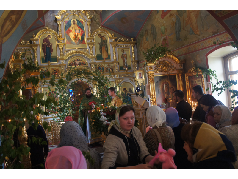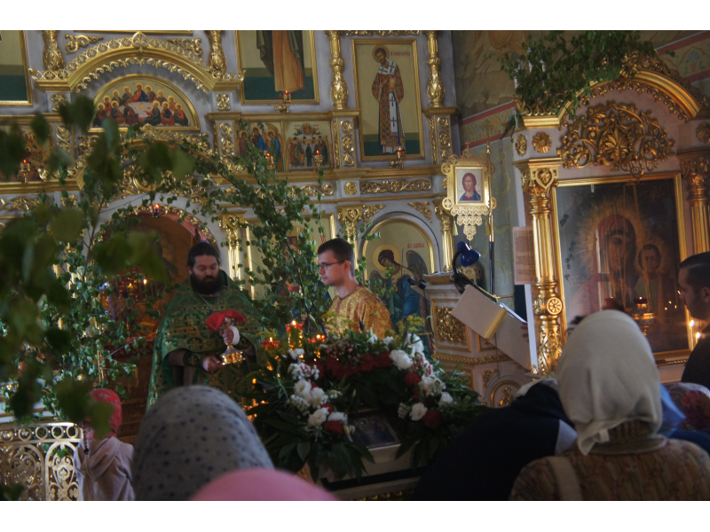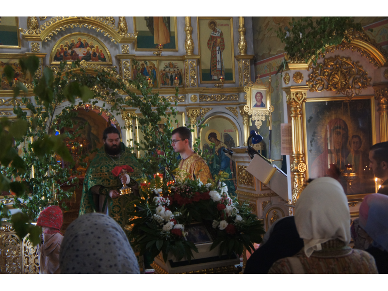 День полон событий. В праздник Троицы, после Божественной Литургии была устроена сладкая трапеза для людей, далее проведена экскурсия с подробным рассказом о новомучениках и исповедниках Коломенских, интересную лекцию рассказала Киселева Анастасия Александровна! В этот праздничный день Вадим Львович Резчиков, заместитель начальника МУ МВД "Коломенское" вручил отцу Андрею старинную икону - "Вознесения Господня с 12 праздничными иконами", которая теперь будет находиться в Казанском храме д. Богдановка. В этот день не обошли и маленьких воспитанников воскресной школы, с ними было проведено спортивное занятие, под руководством Александры.