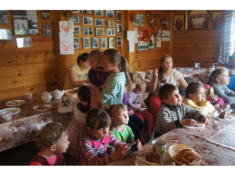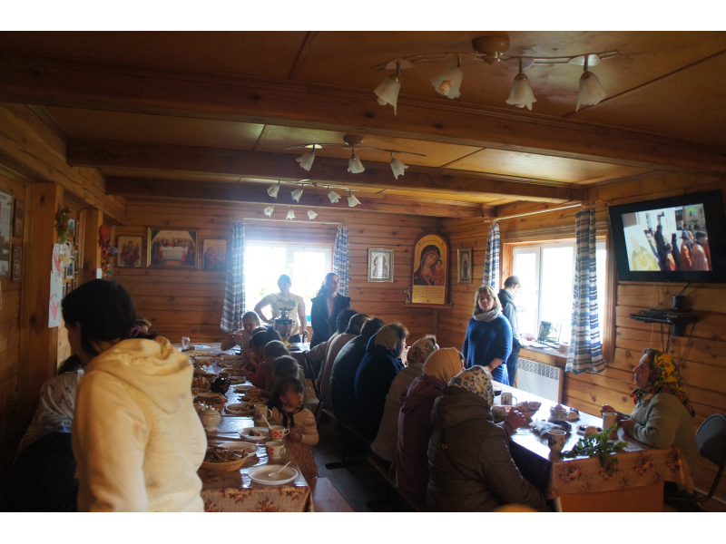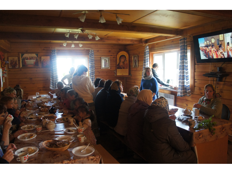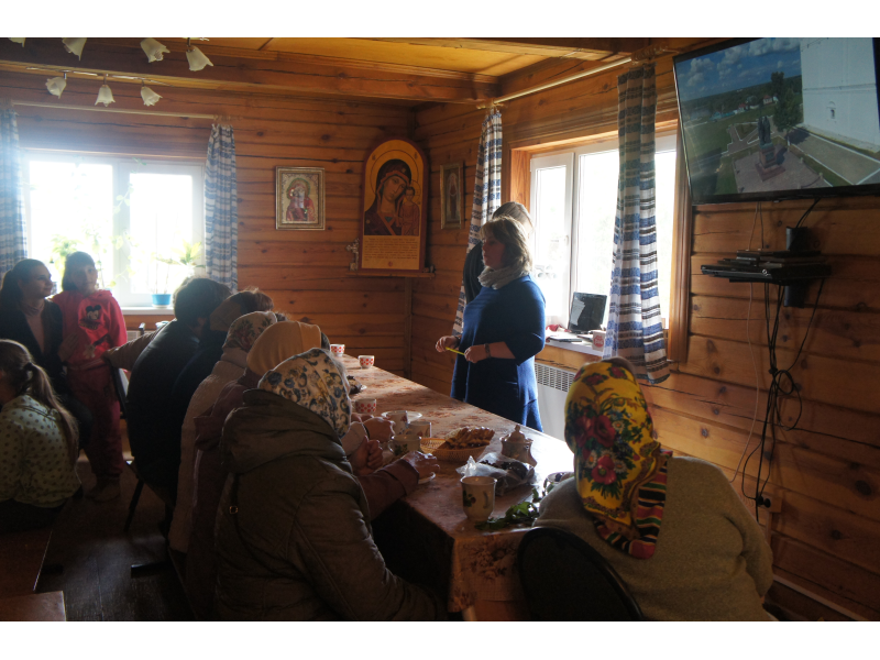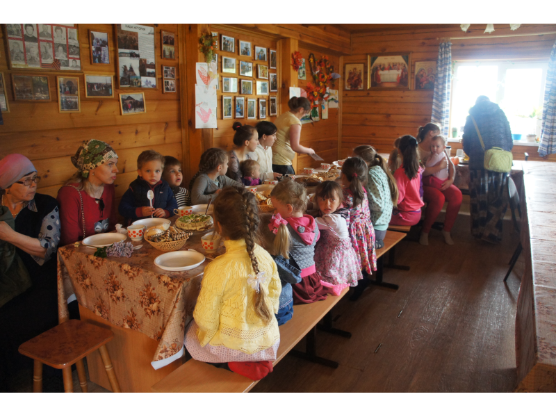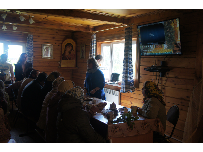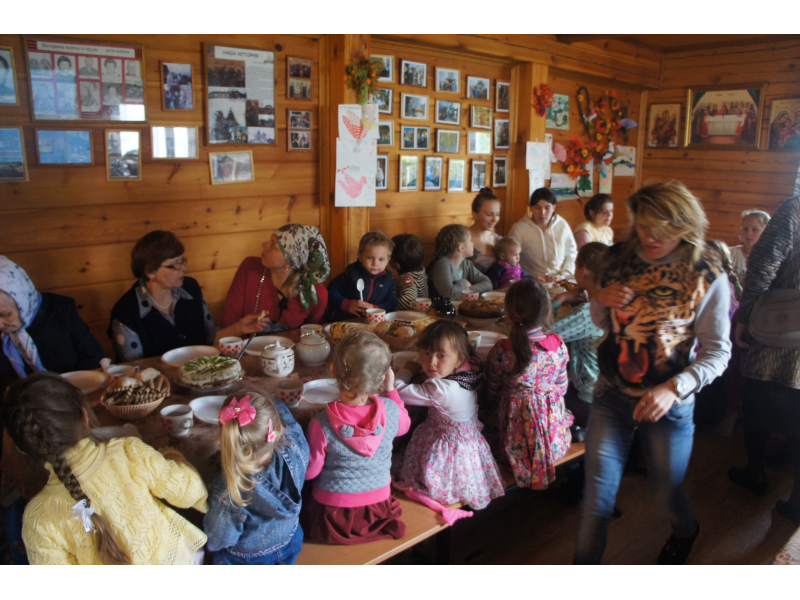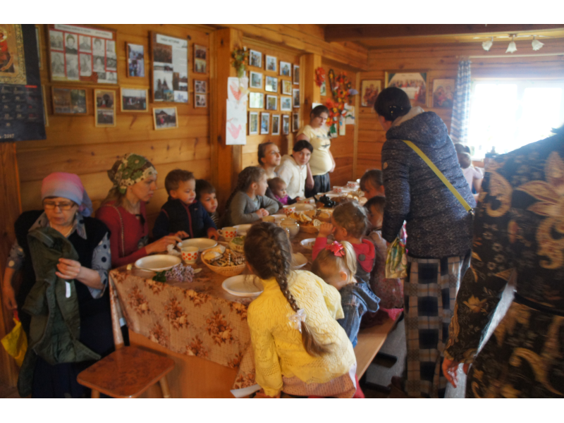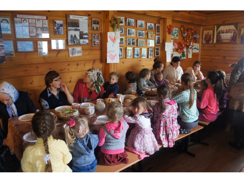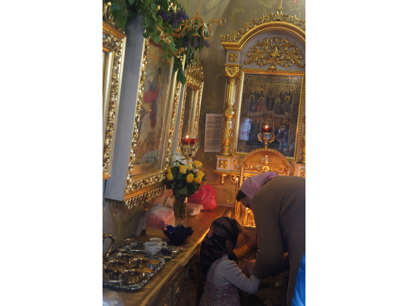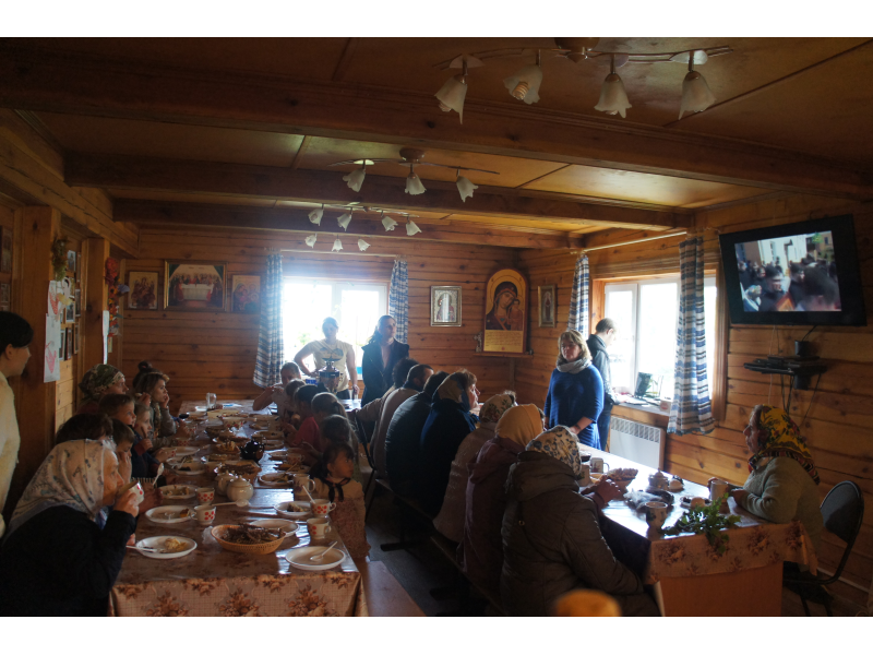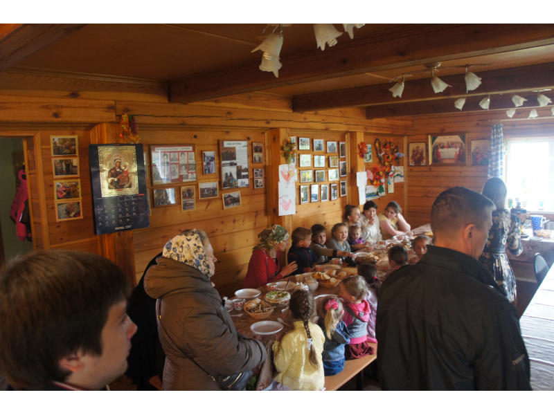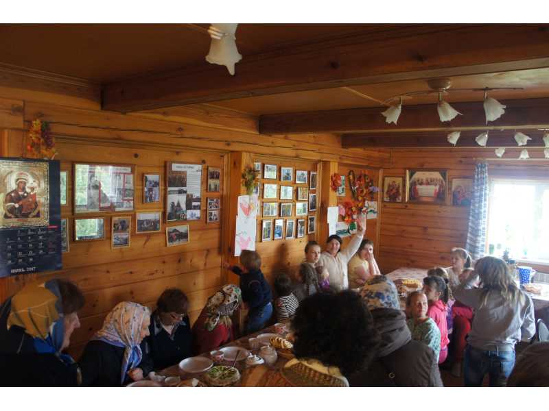 День полон событий. В праздник Троицы, после Божественной Литургии была устроена сладкая трапеза для людей, далее проведена экскурсия с подробным рассказом о новомучениках и исповедниках Коломенских, интересную лекцию рассказала Киселева Анастасия Александровна! В этот праздничный день Вадим Львович Резчиков, заместитель начальника МУ МВД "Коломенское" вручил отцу Андрею старинную икону - "Вознесения Господня с 12 праздничными иконами", которая теперь будет находиться в Казанском храме д. Богдановка. В этот день не обошли и маленьких воспитанников воскресной школы, с ними было проведено спортивное занятие, под руководством Александры.