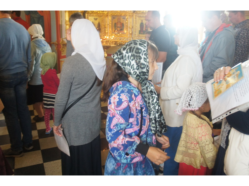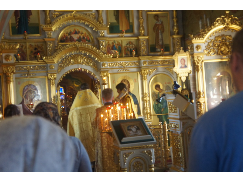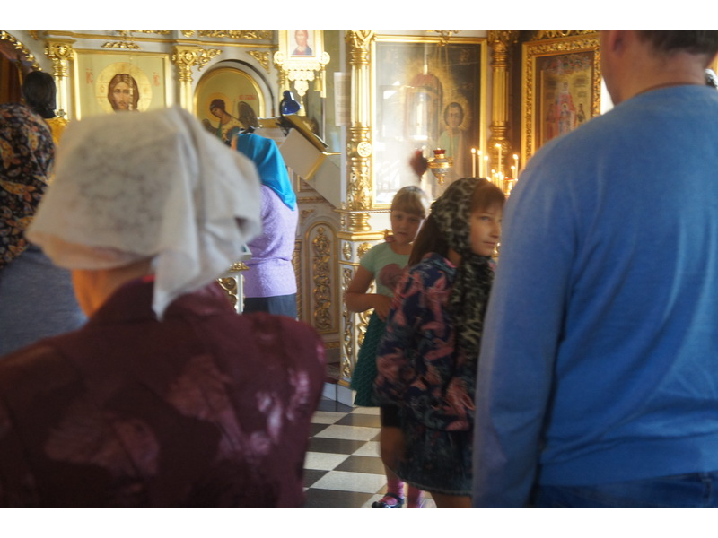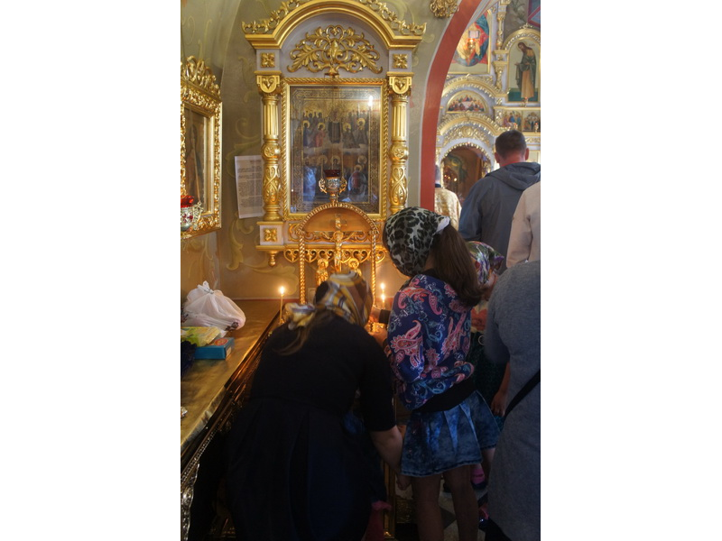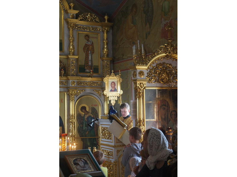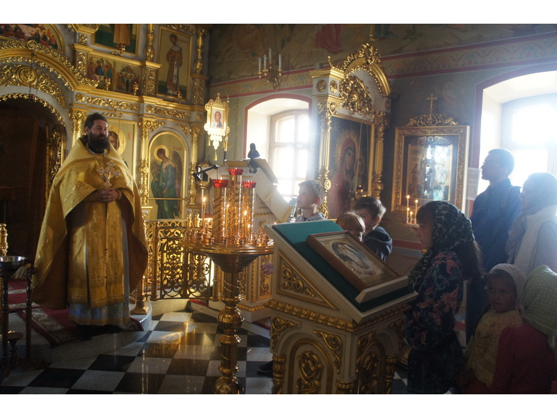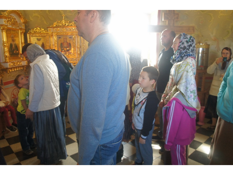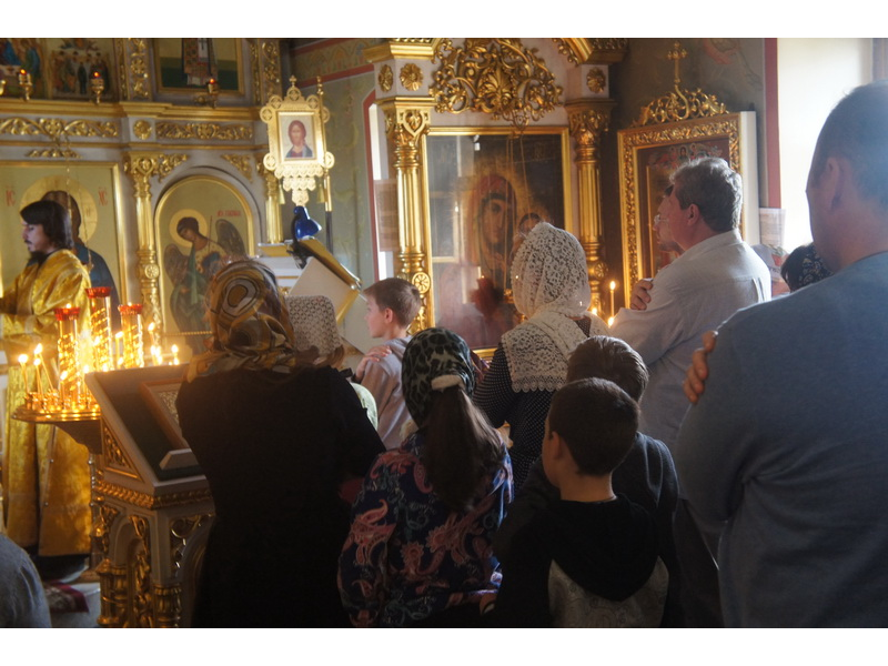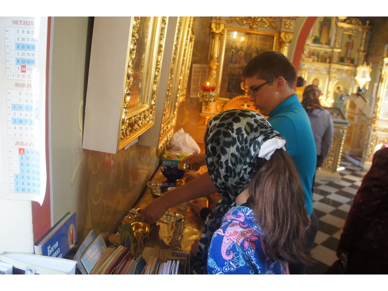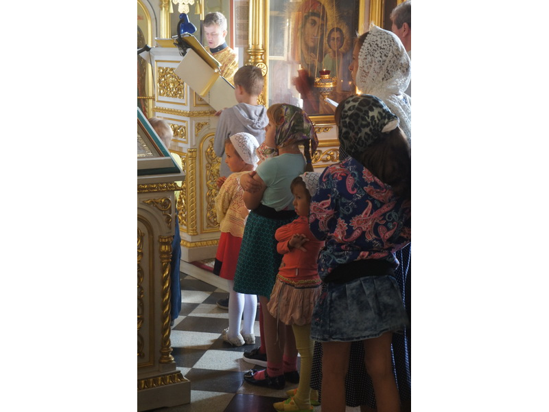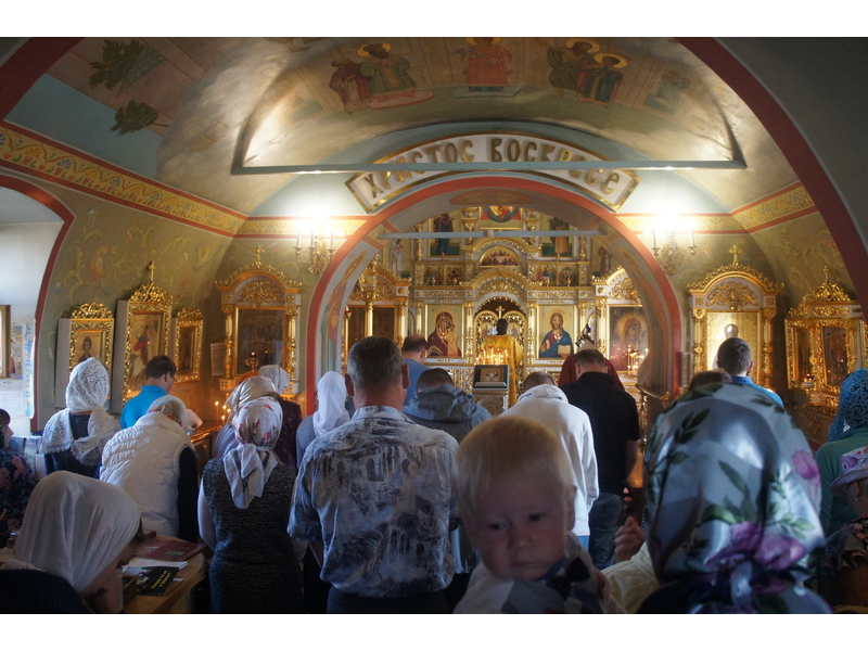 Воскресный день на приходе прошел очень активно. Утром после Божественной Литургии был отслужен молебен для учащихся. В обед нас посетили паломники из Москвы, им была проведена экскурсия по храму и предложена домашняя трапеза. Вечером была отслужена всенощная, после которой детки направились на источник и полакомились сладкими угощениями и дыней. Икону к празднику в храме украшали воспитанники воскресной школы, а также готовили сладкие угощения.
