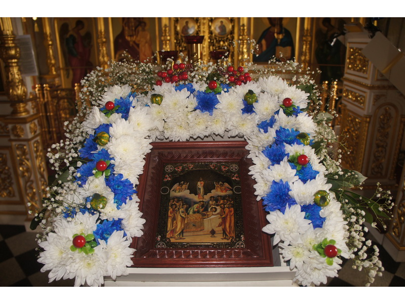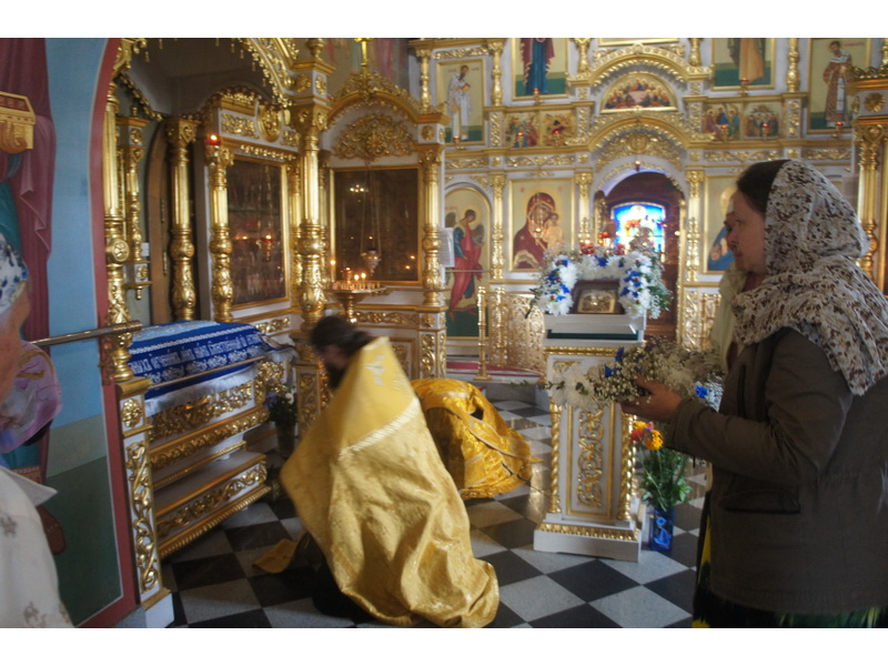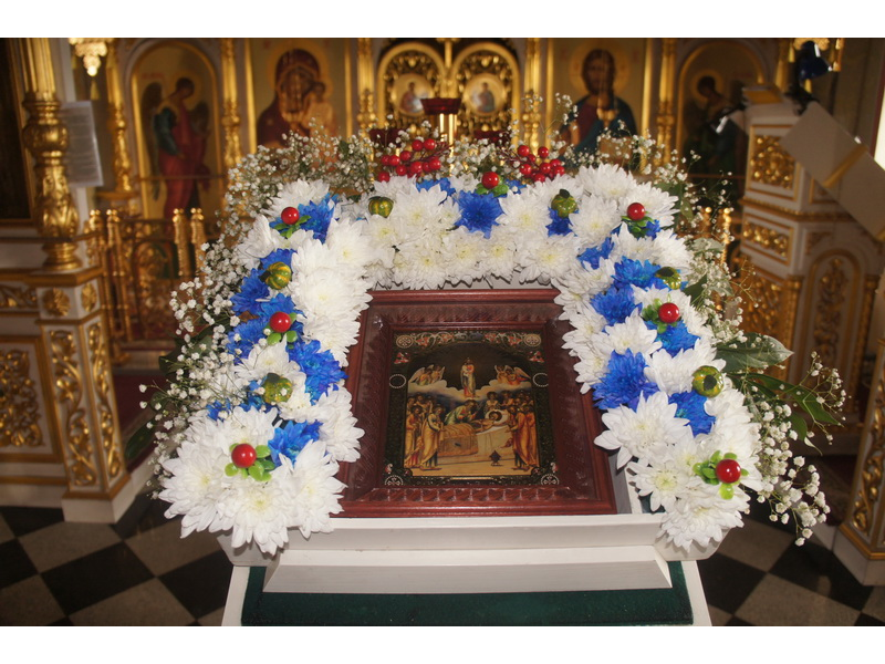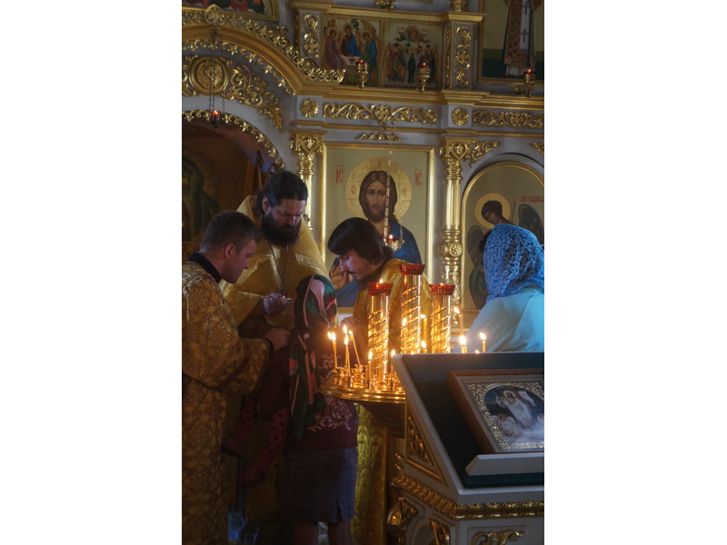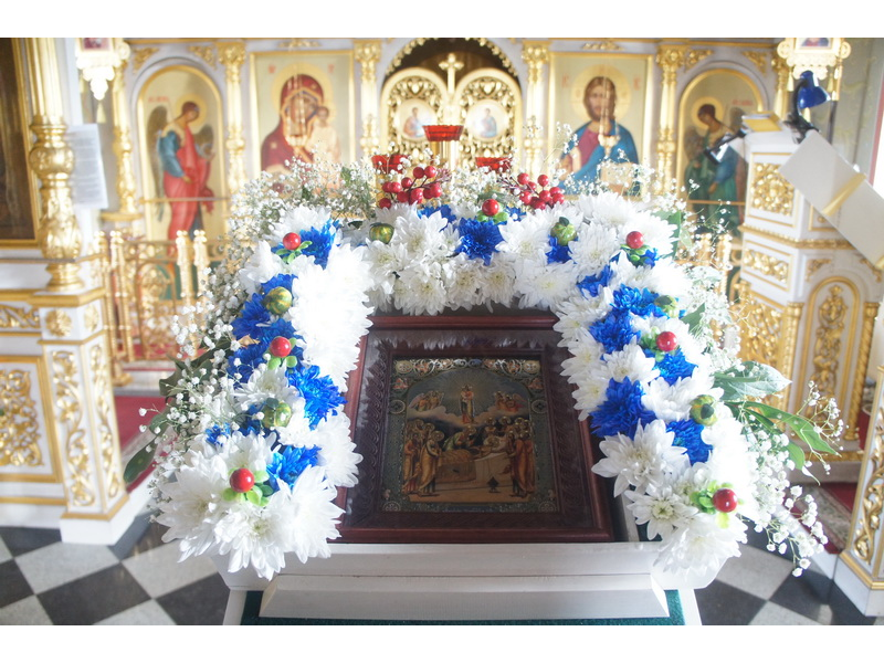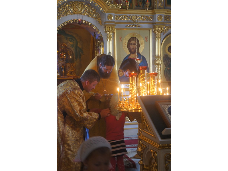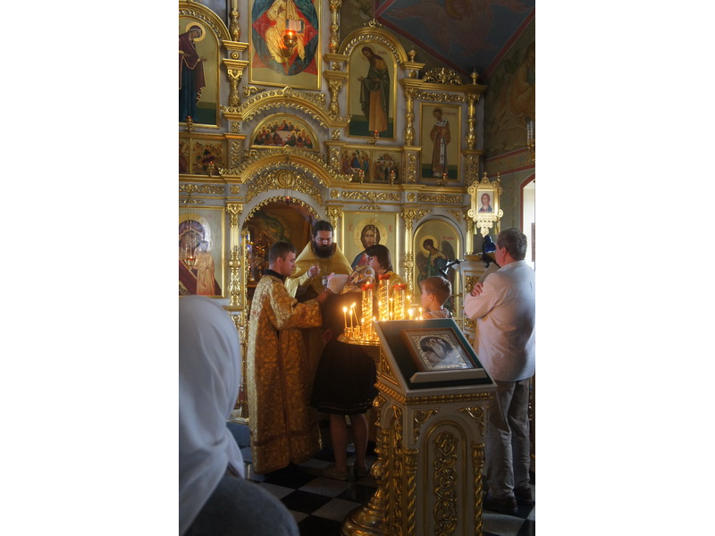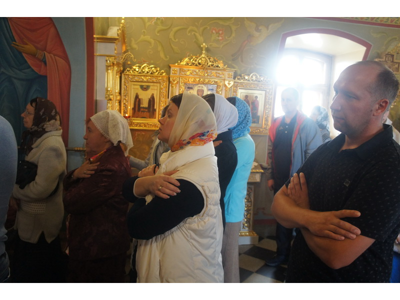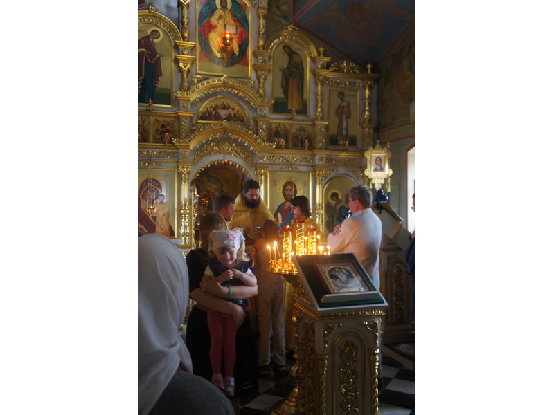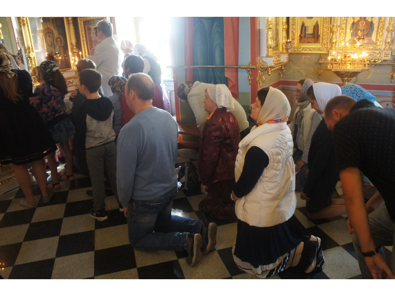 Воскресный день на приходе прошел очень активно. Утром после Божественной Литургии был отслужен молебен для учащихся. В обед нас посетили паломники из Москвы, им была проведена экскурсия по храму и предложена домашняя трапеза. Вечером была отслужена всенощная, после которой детки направились на источник и полакомились сладкими угощениями и дыней. Икону к празднику в храме украшали воспитанники воскресной школы, а также готовили сладкие угощения.