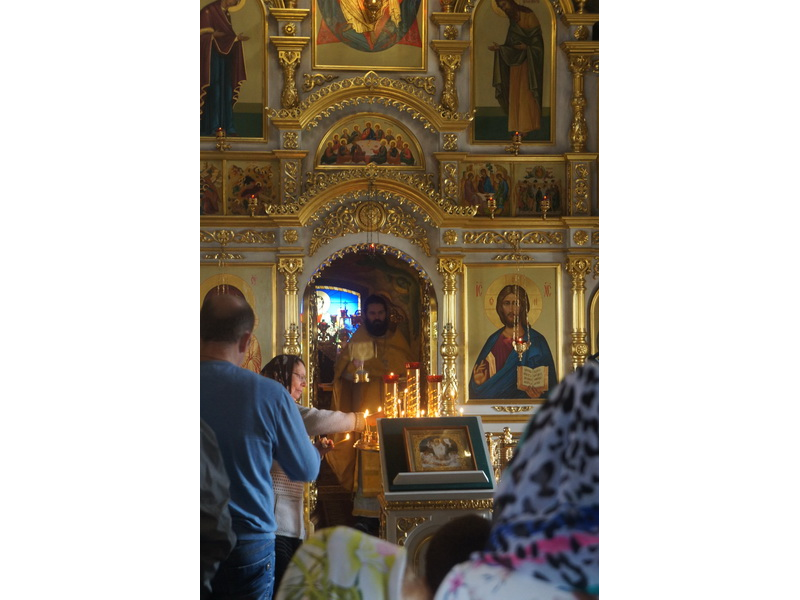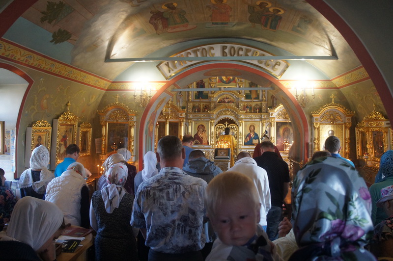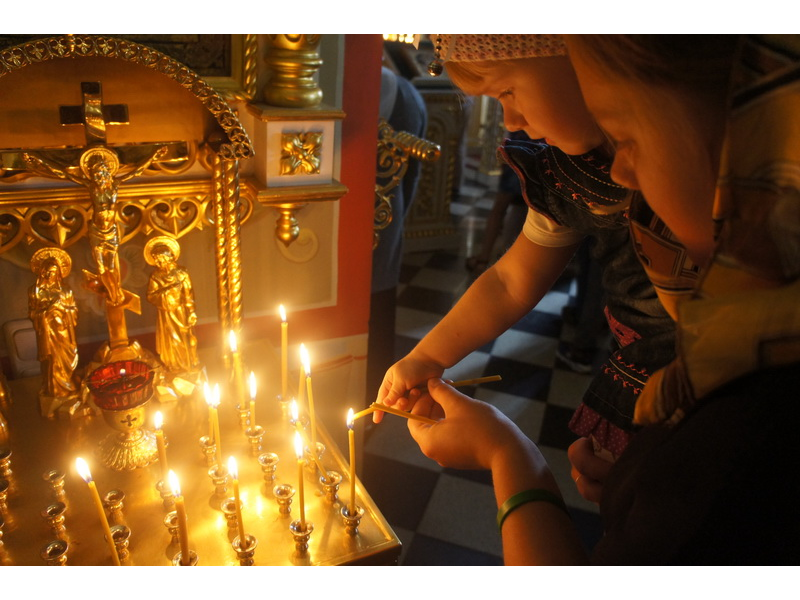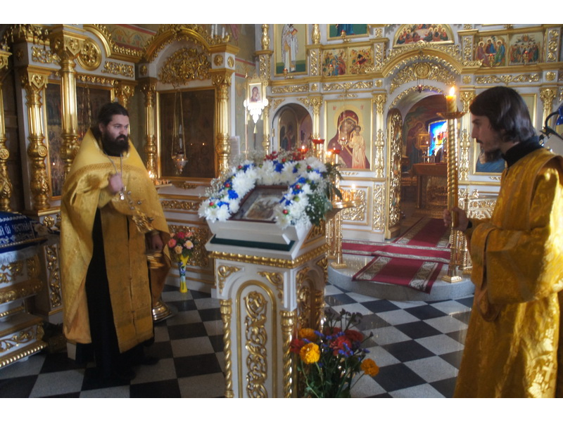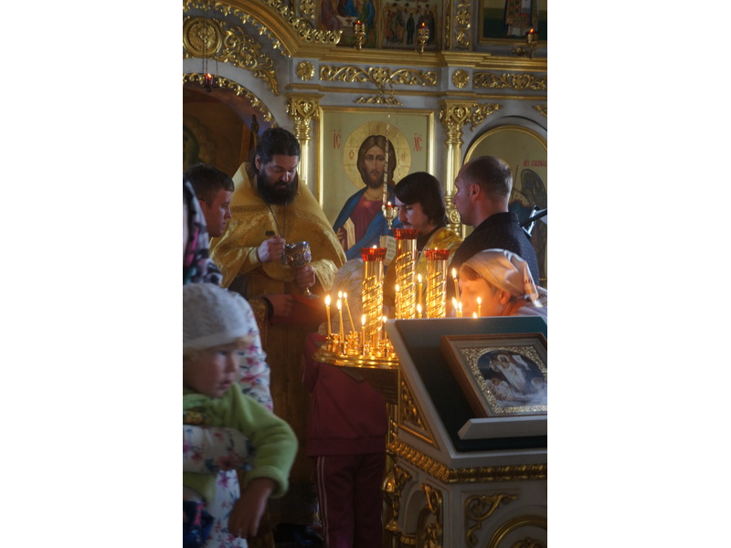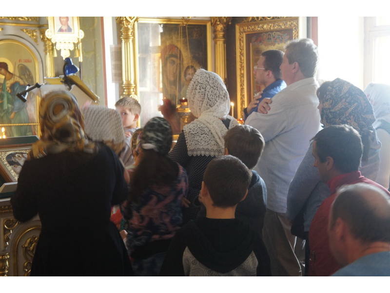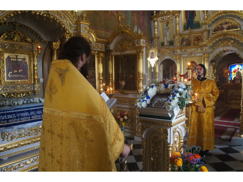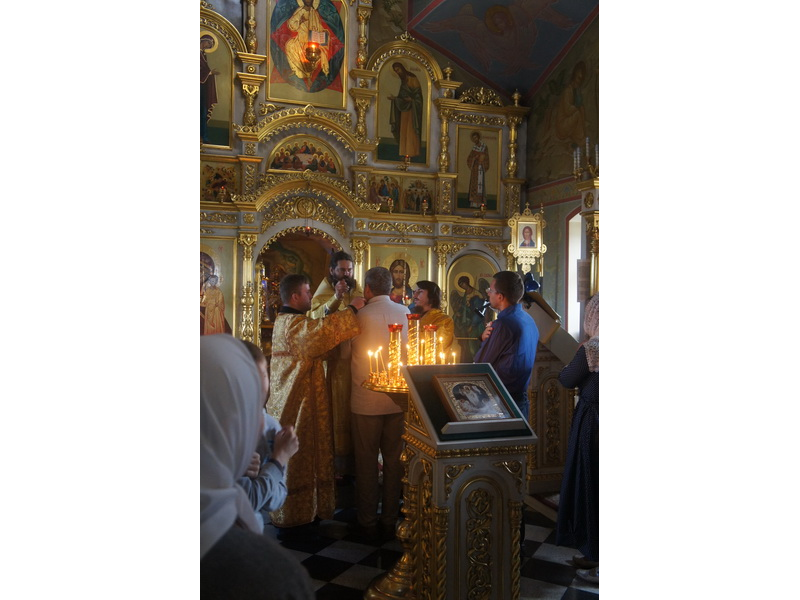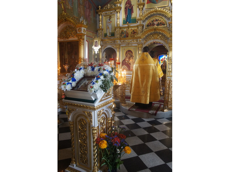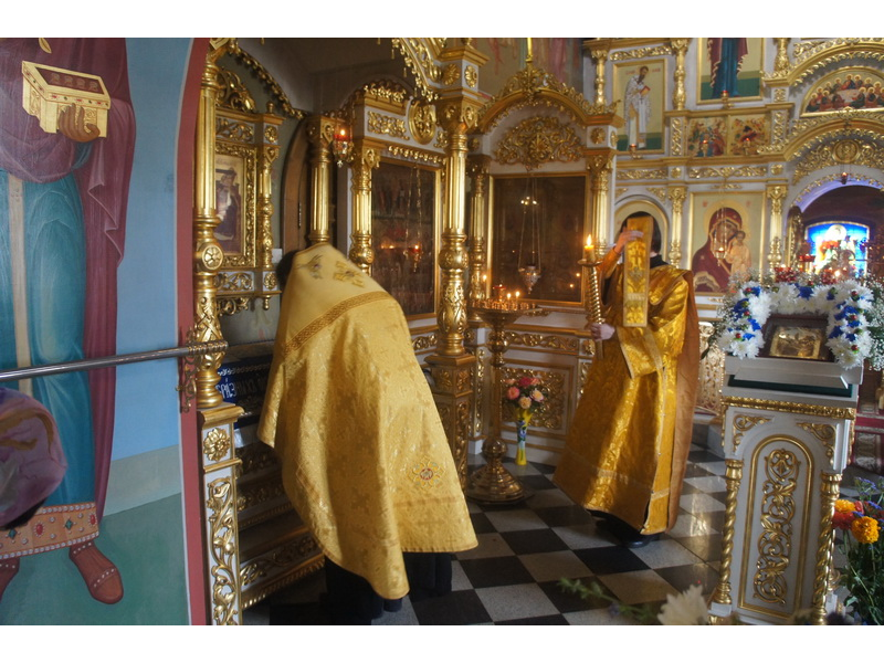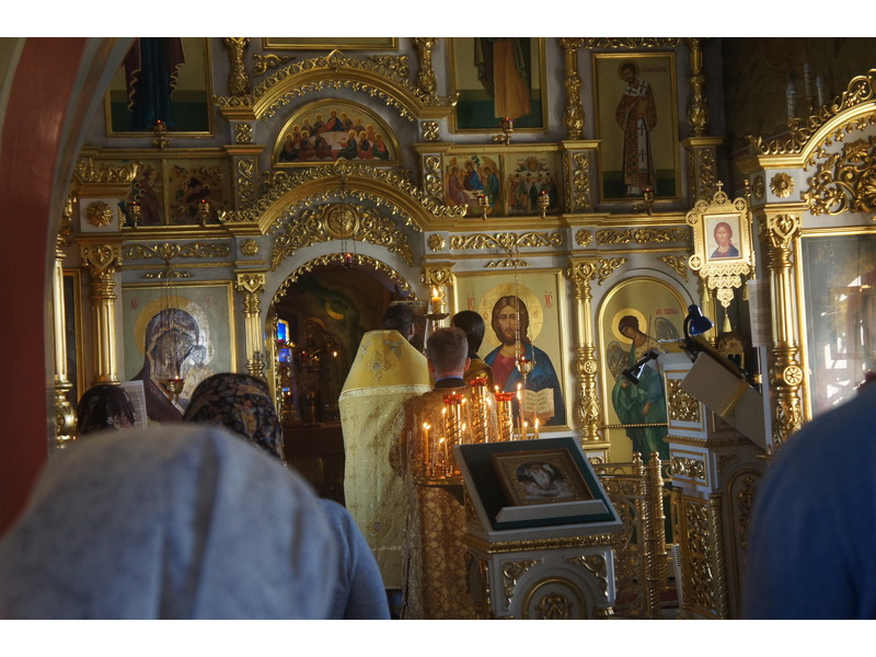 Воскресный день на приходе прошел очень активно. Утром после Божественной Литургии был отслужен молебен для учащихся. В обед нас посетили паломники из Москвы, им была проведена экскурсия по храму и предложена домашняя трапеза. Вечером была отслужена всенощная, после которой детки направились на источник и полакомились сладкими угощениями и дыней. Икону к празднику в храме украшали воспитанники воскресной школы, а также готовили сладкие угощения.