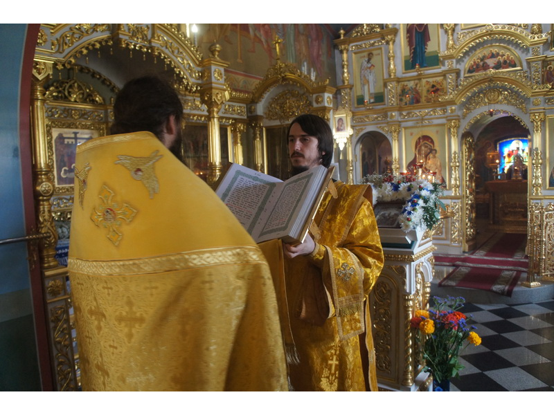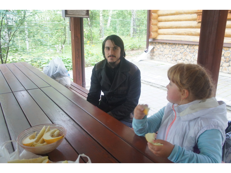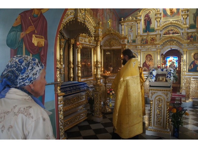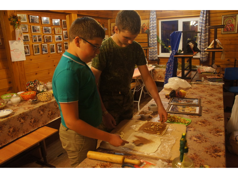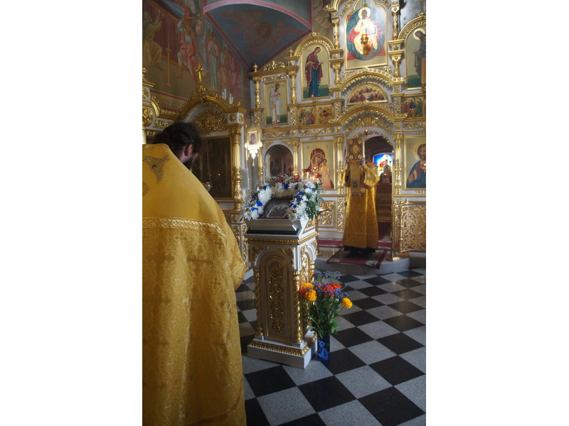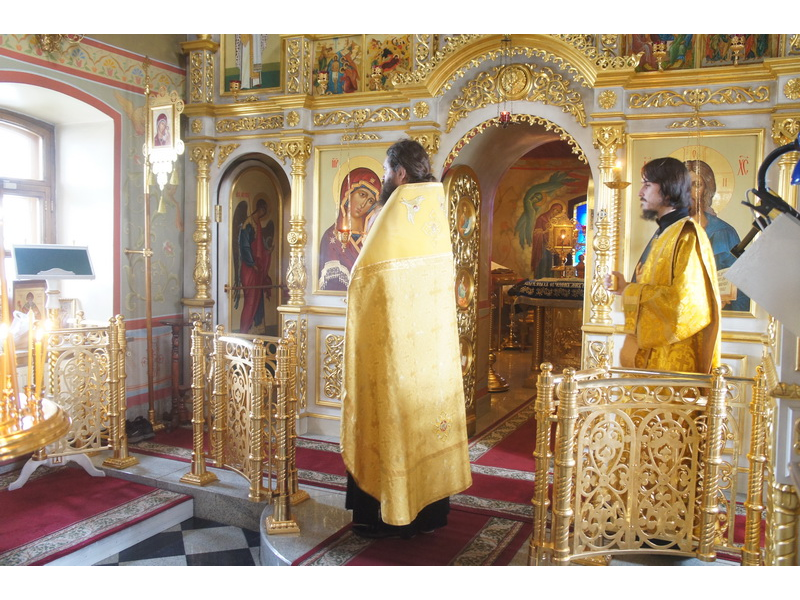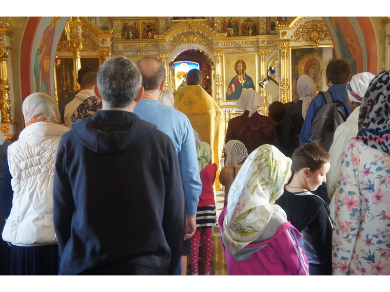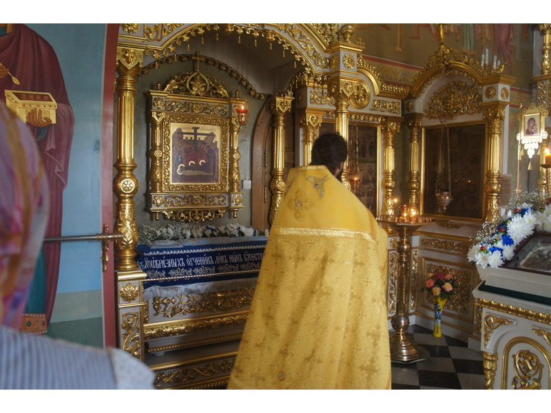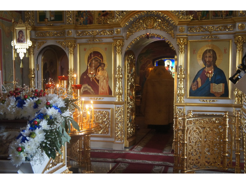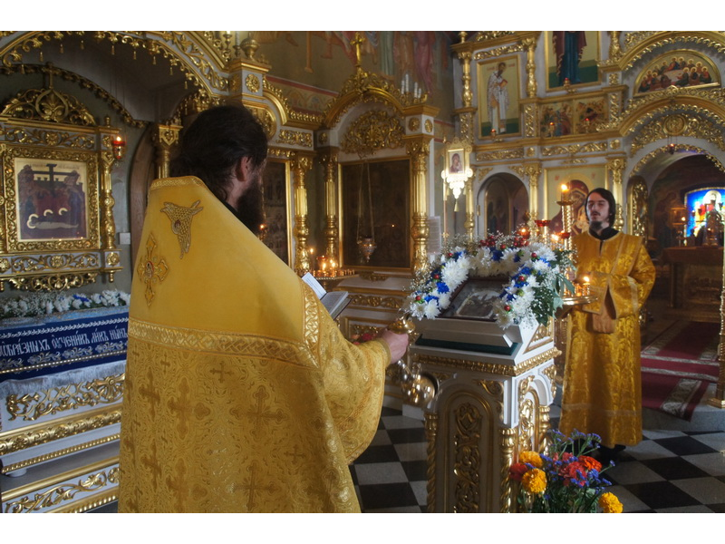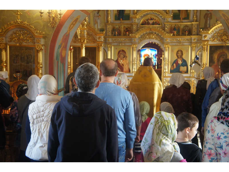 Воскресный день на приходе прошел очень активно. Утром после Божественной Литургии был отслужен молебен для учащихся. В обед нас посетили паломники из Москвы, им была проведена экскурсия по храму и предложена домашняя трапеза. Вечером была отслужена всенощная, после которой детки направились на источник и полакомились сладкими угощениями и дыней. Икону к празднику в храме украшали воспитанники воскресной школы, а также готовили сладкие угощения.
