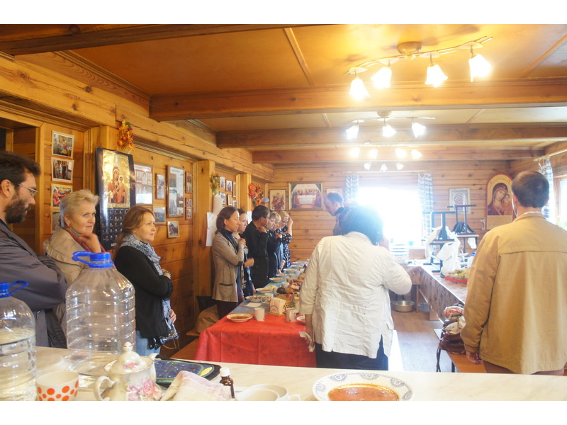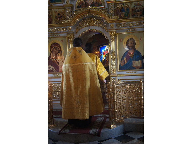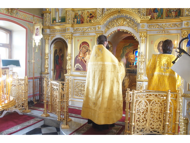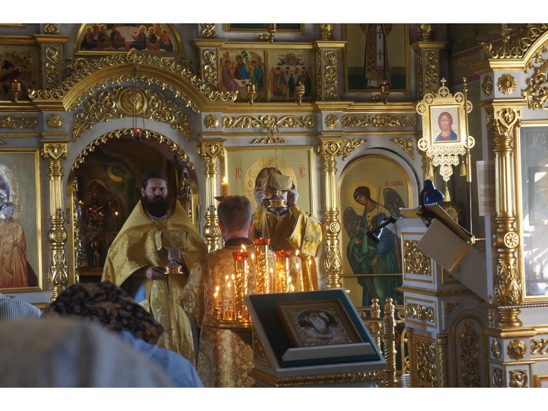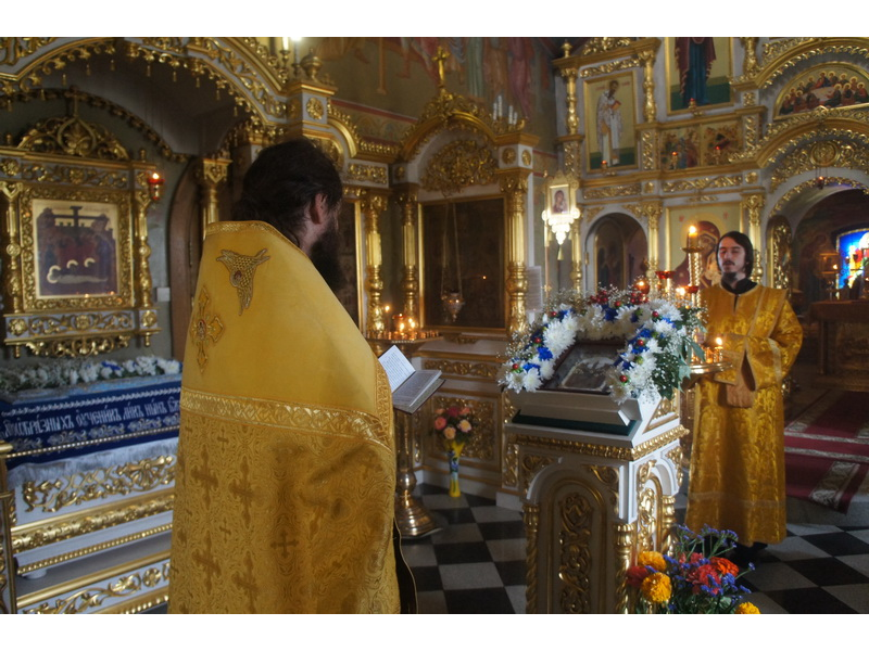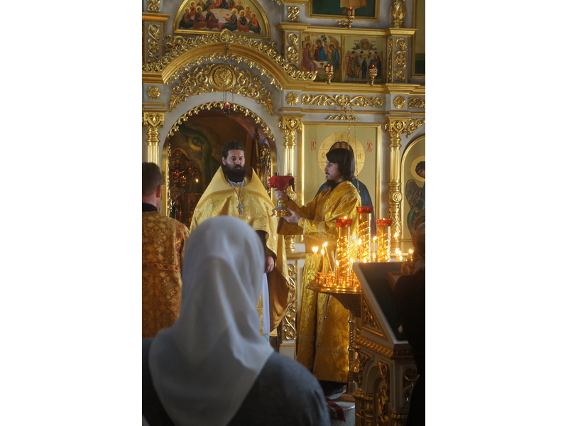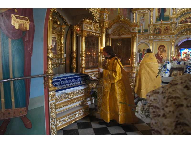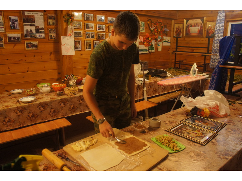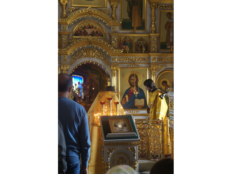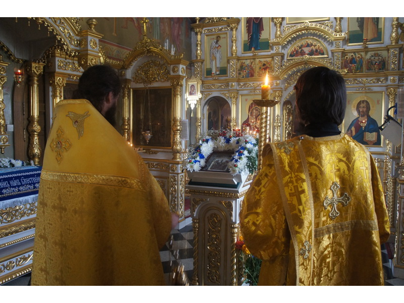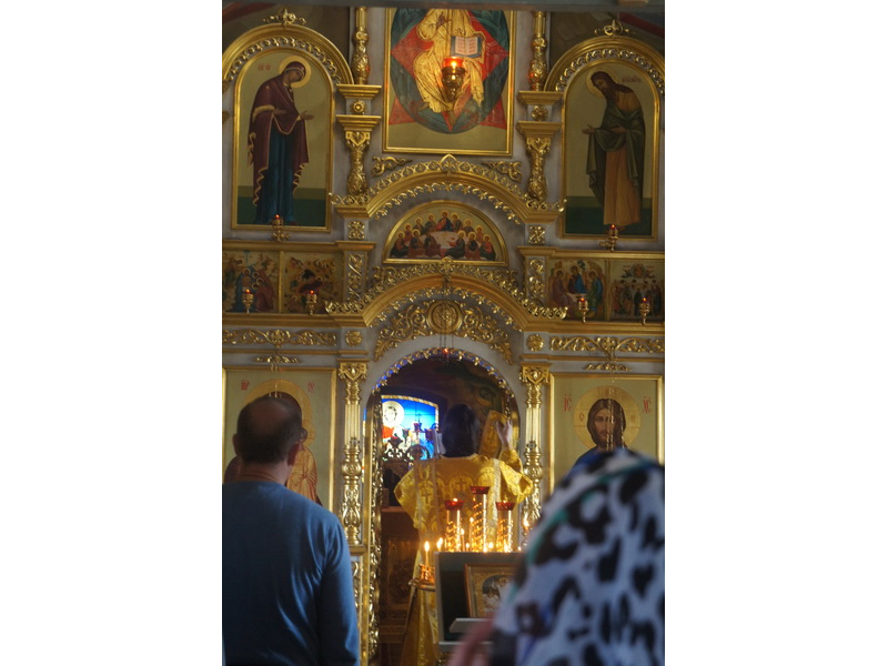 Воскресный день на приходе прошел очень активно. Утром после Божественной Литургии был отслужен молебен для учащихся. В обед нас посетили паломники из Москвы, им была проведена экскурсия по храму и предложена домашняя трапеза. Вечером была отслужена всенощная, после которой детки направились на источник и полакомились сладкими угощениями и дыней. Икону к празднику в храме украшали воспитанники воскресной школы, а также готовили сладкие угощения.