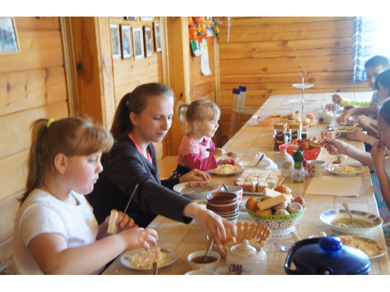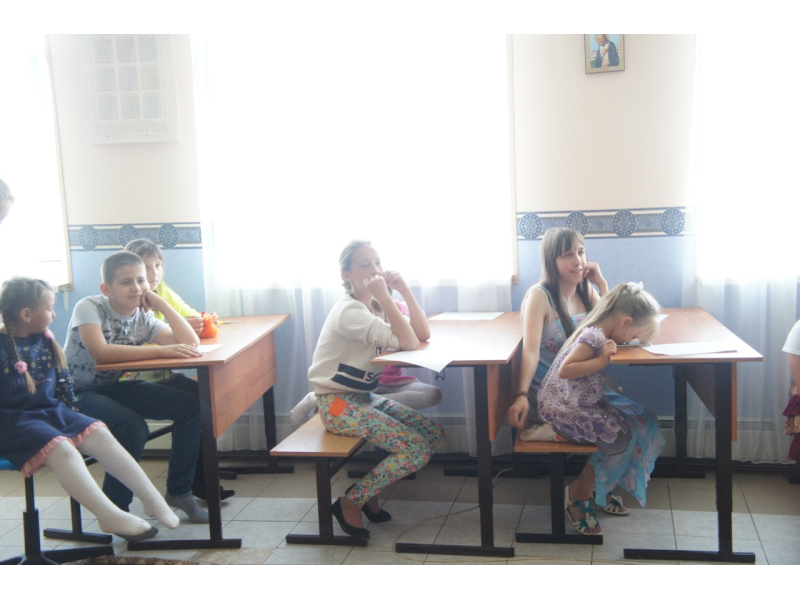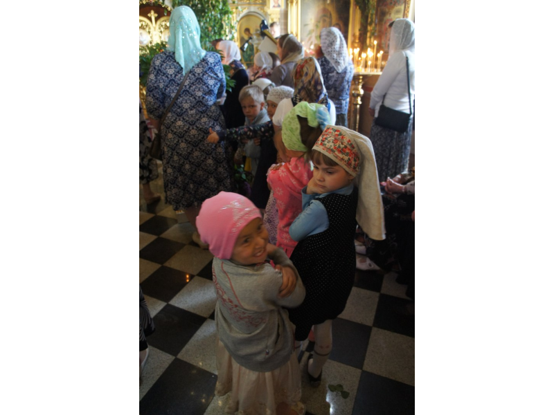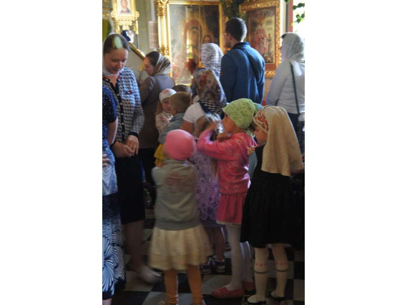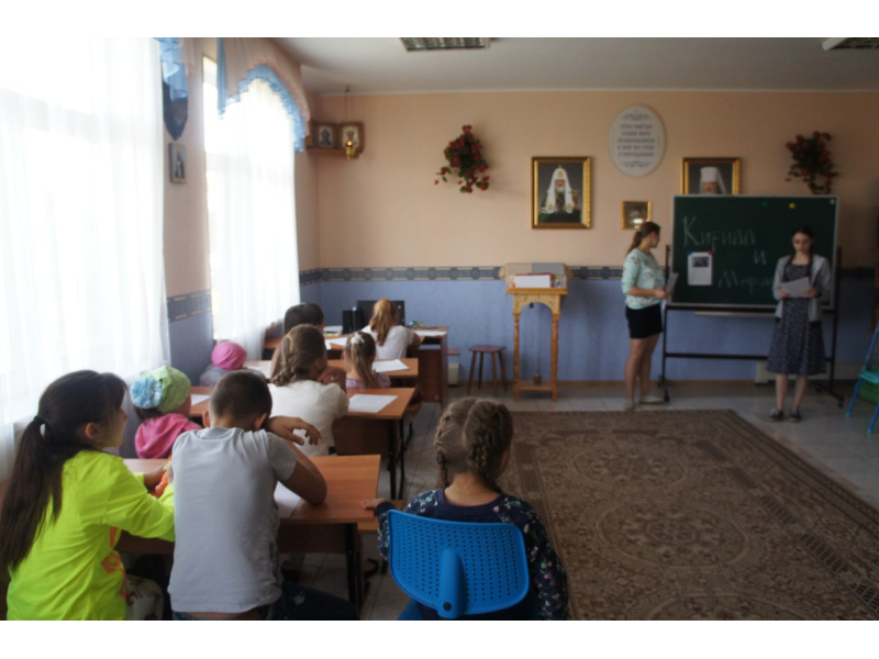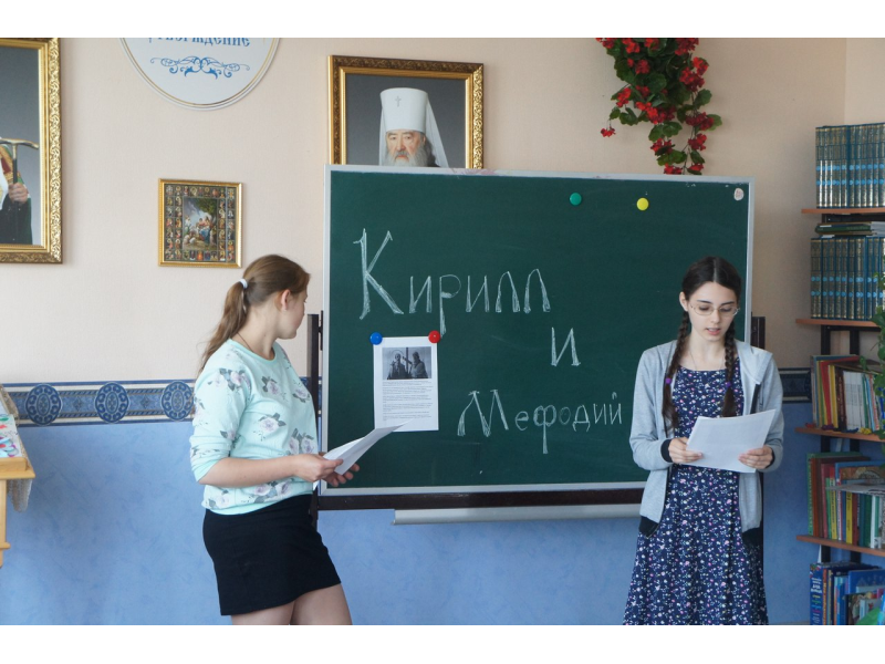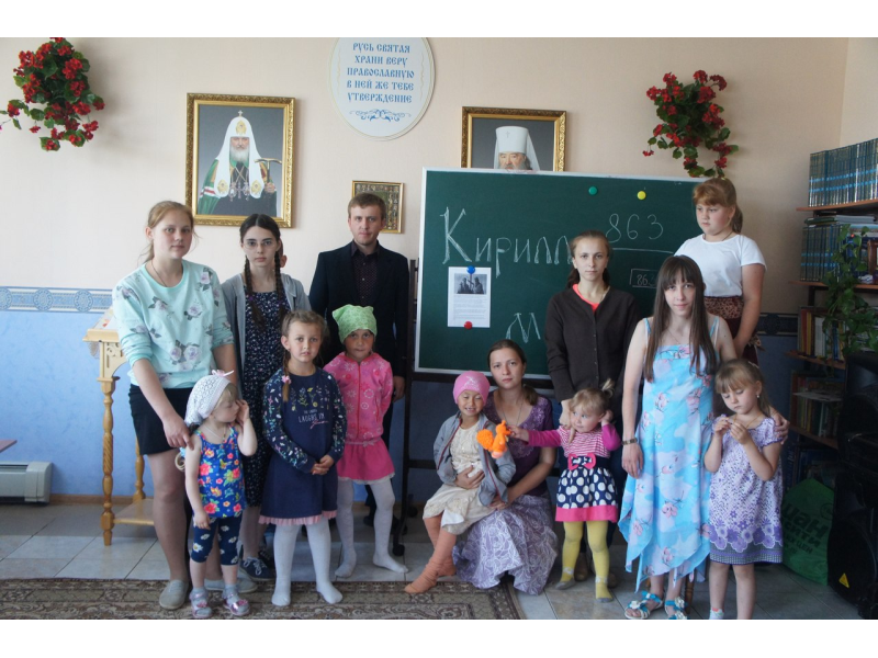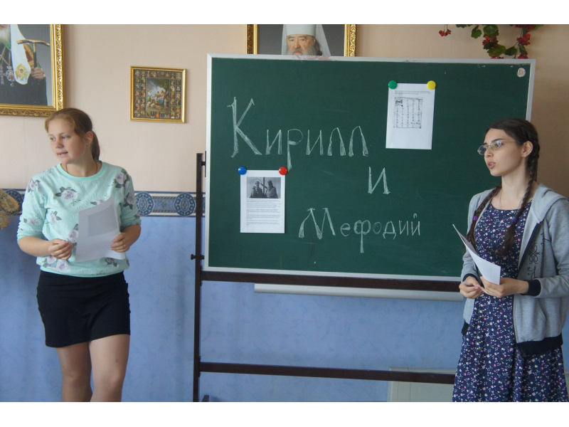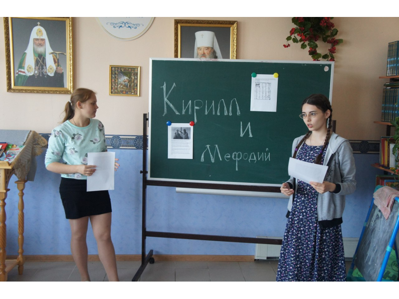 К празднику дети готовились, запаслись в лесу березами и веточками, украсили храм. После старшие воспитанницы вспомнили на занятии о прошедшем празднике равноапостальных Кирилла и Мефодия.