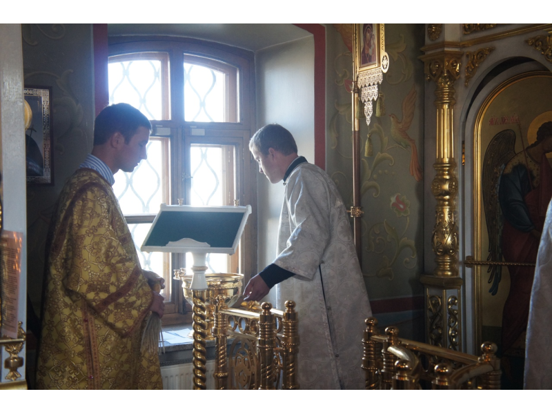 Сегодня Божественную Литургию отслужил настоятель храма отец Андрей в сослужении с иеромонахом Феофаном, студентом СПДА.