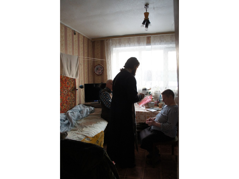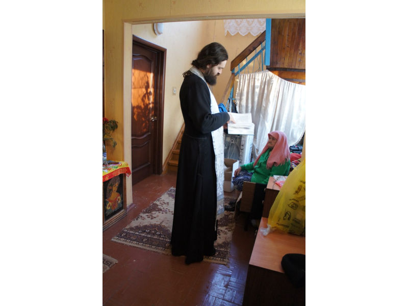 о. Андрей посетил пенсионеров, которые из-за своего возраста и здоровья не могут быть в храме. Над ними было совершено таинство соборования и вручены небольшие предпасхальные подарки.