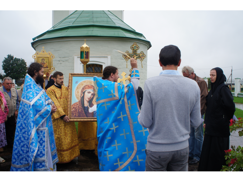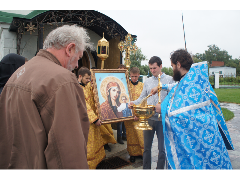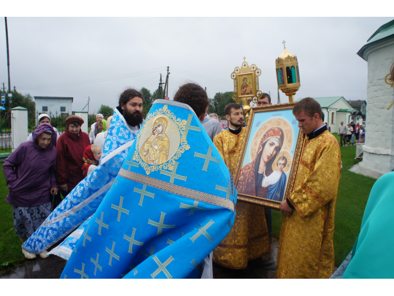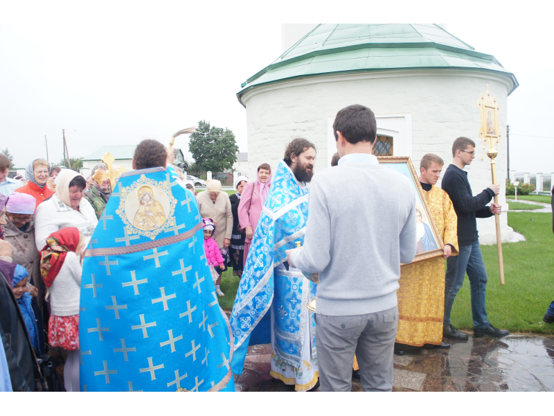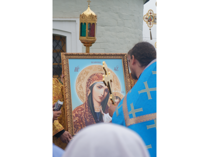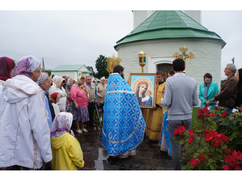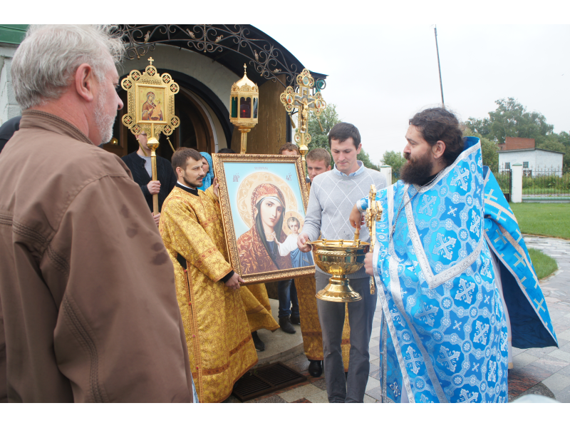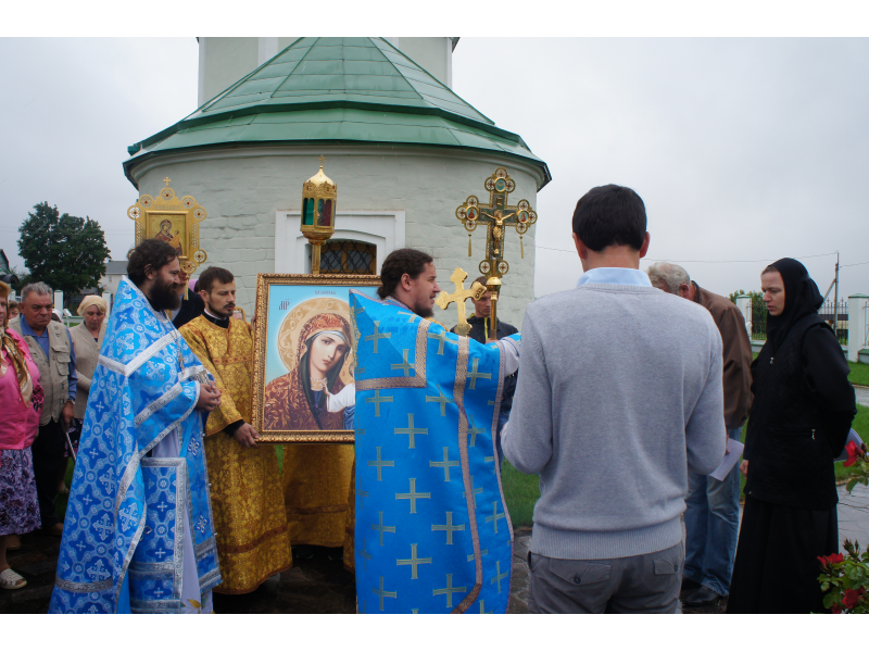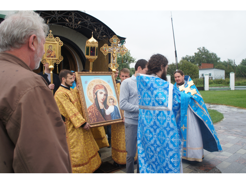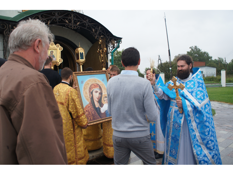 После службы был отслужен молебен и весь приход с иконой Божией Матери "Казанской", во главе с батюшками, направился с пением праздничных тропарей, крестным ходом вокруг храма, после настоятель храма о. Андрей обратился с проповедью к людям - подчеркнул всеобщую радость праздника и заступничество Божией Матери над всеми нами.