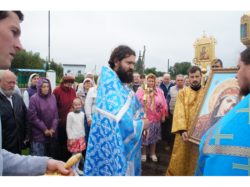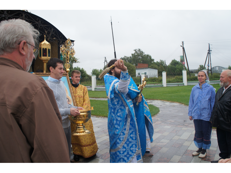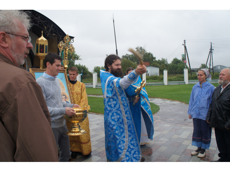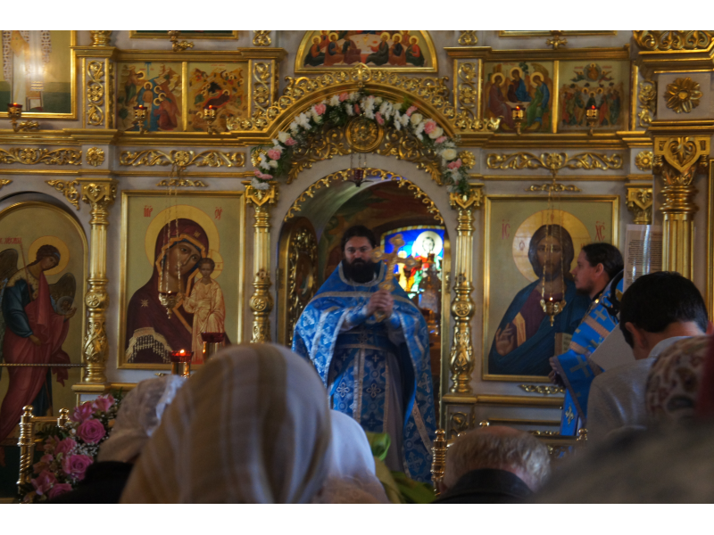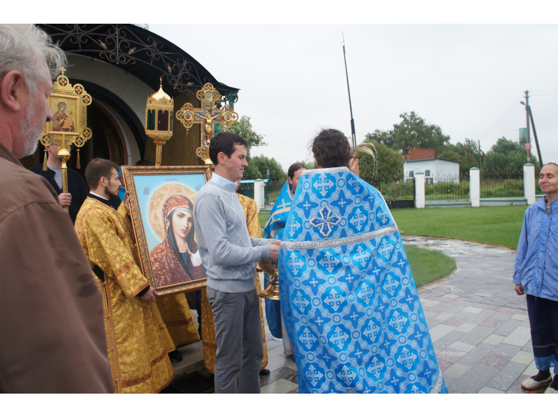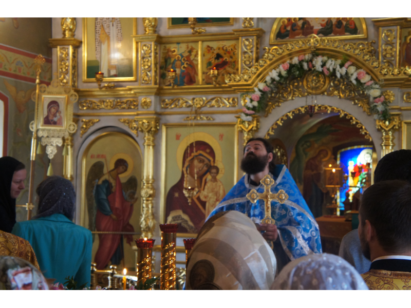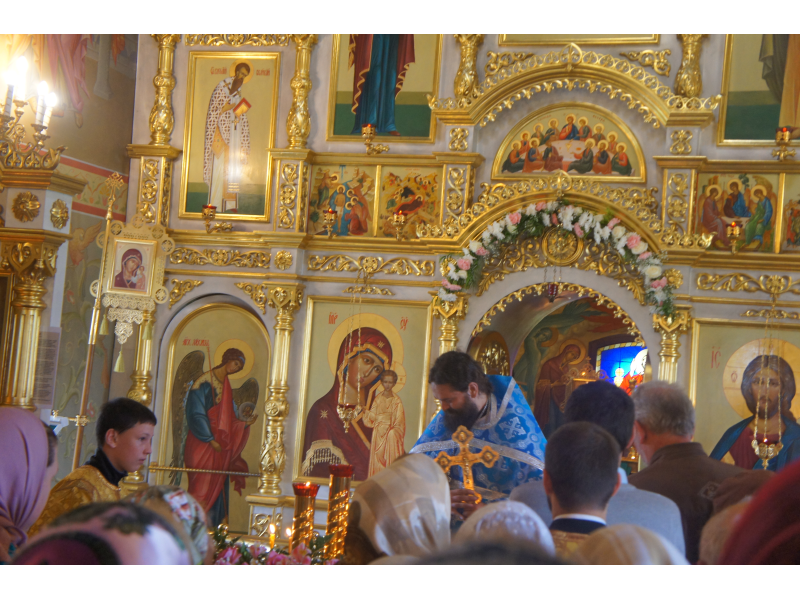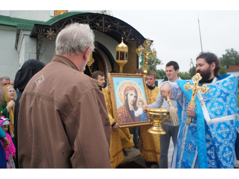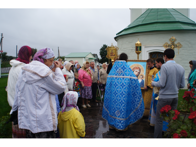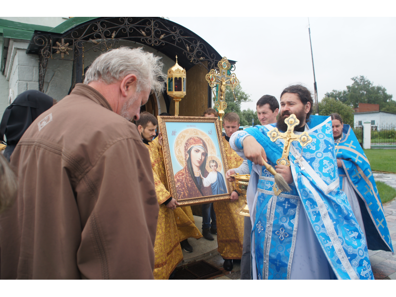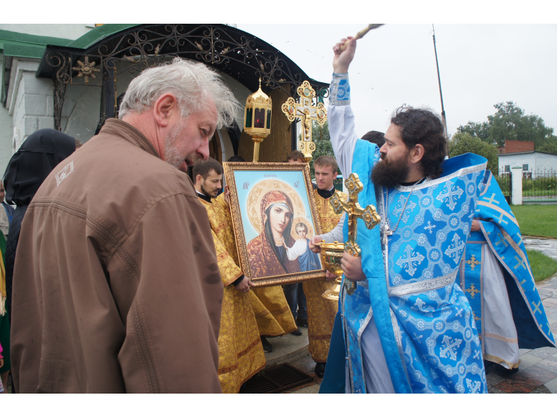 После службы был отслужен молебен и весь приход с иконой Божией Матери "Казанской", во главе с батюшками, направился с пением праздничных тропарей, крестным ходом вокруг храма, после настоятель храма о. Андрей обратился с проповедью к людям - подчеркнул всеобщую радость праздника и заступничество Божией Матери над всеми нами.