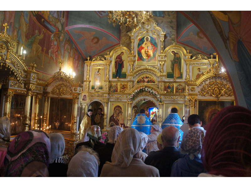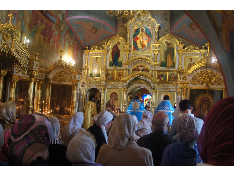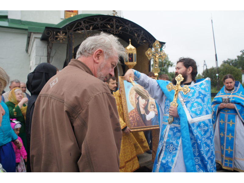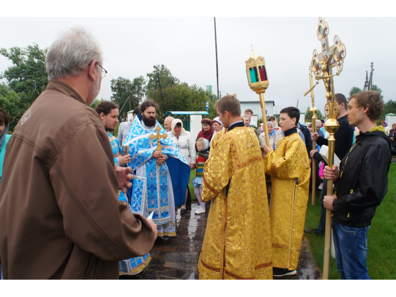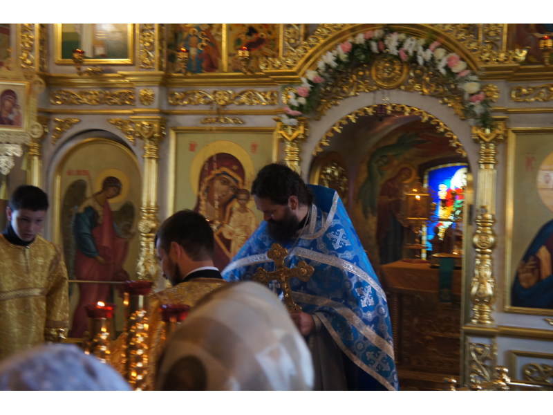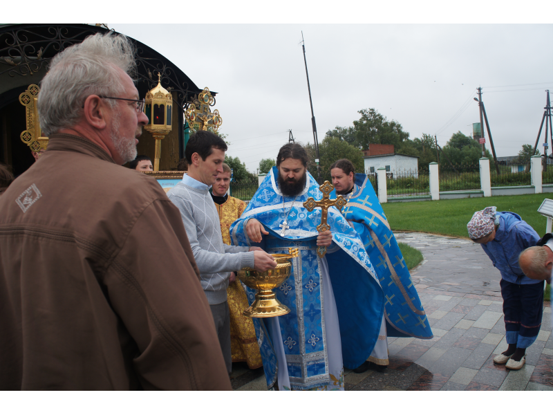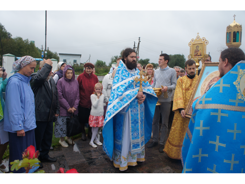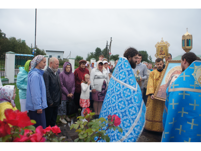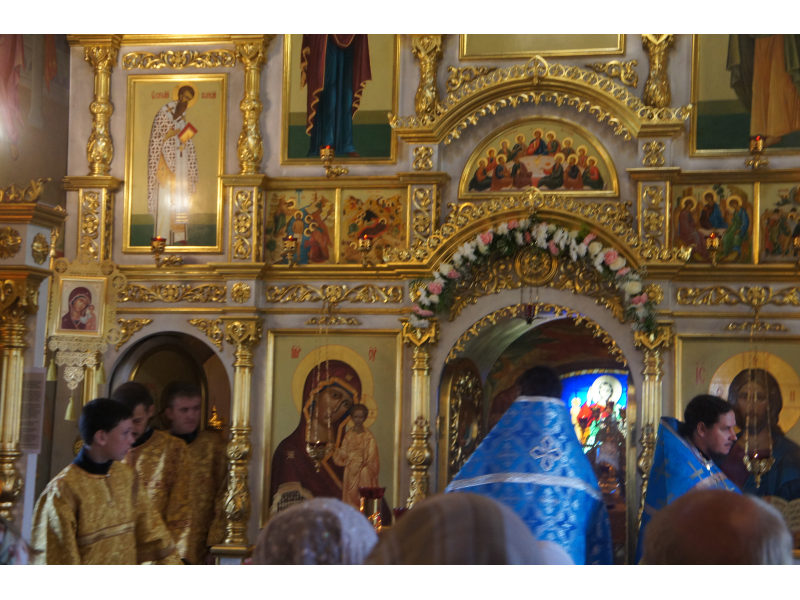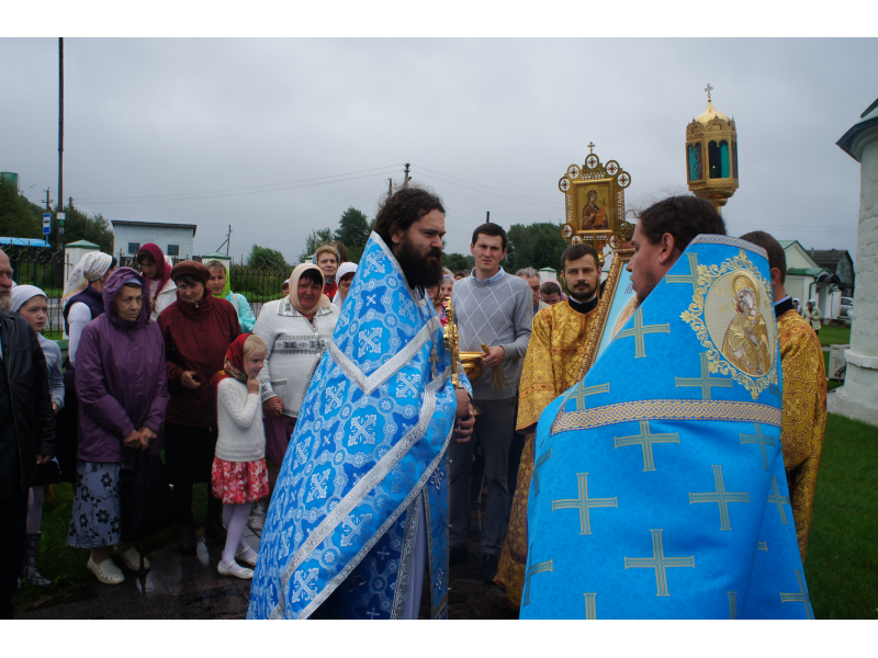 После службы был отслужен молебен и весь приход с иконой Божией Матери "Казанской", во главе с батюшками, направился с пением праздничных тропарей, крестным ходом вокруг храма, после настоятель храма о. Андрей обратился с проповедью к людям - подчеркнул всеобщую радость праздника и заступничество Божией Матери над всеми нами.
