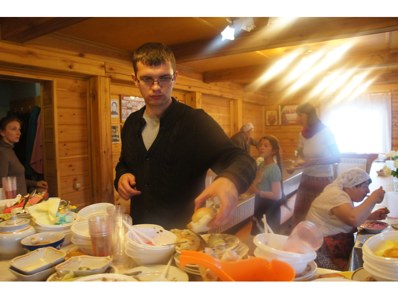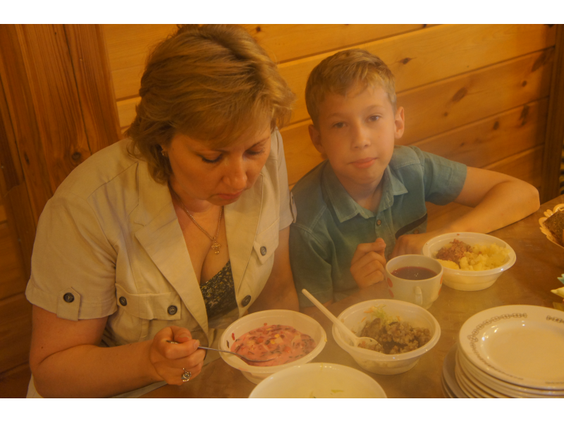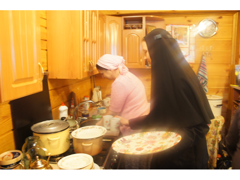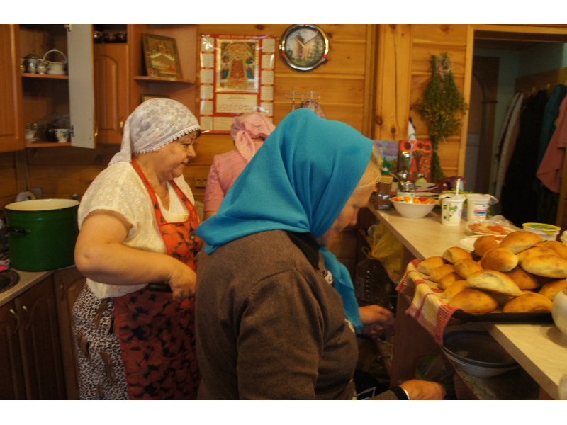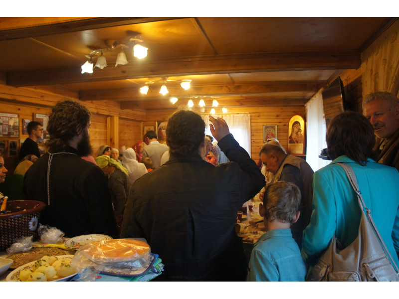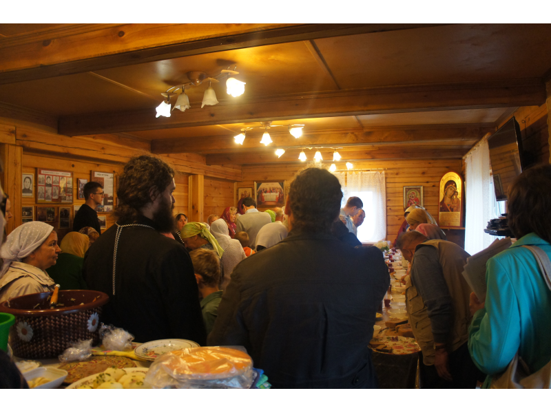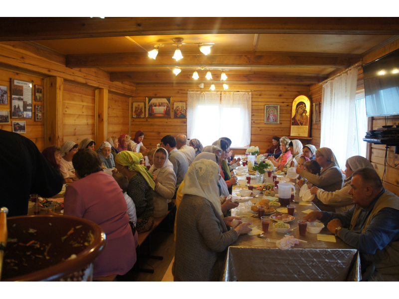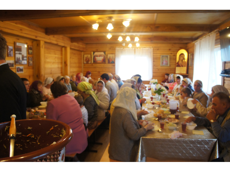 На праздничной трапезе, приготовленной трудами наших матушек, каждый поздравил друг друга с праздником под пение "Многая лета".