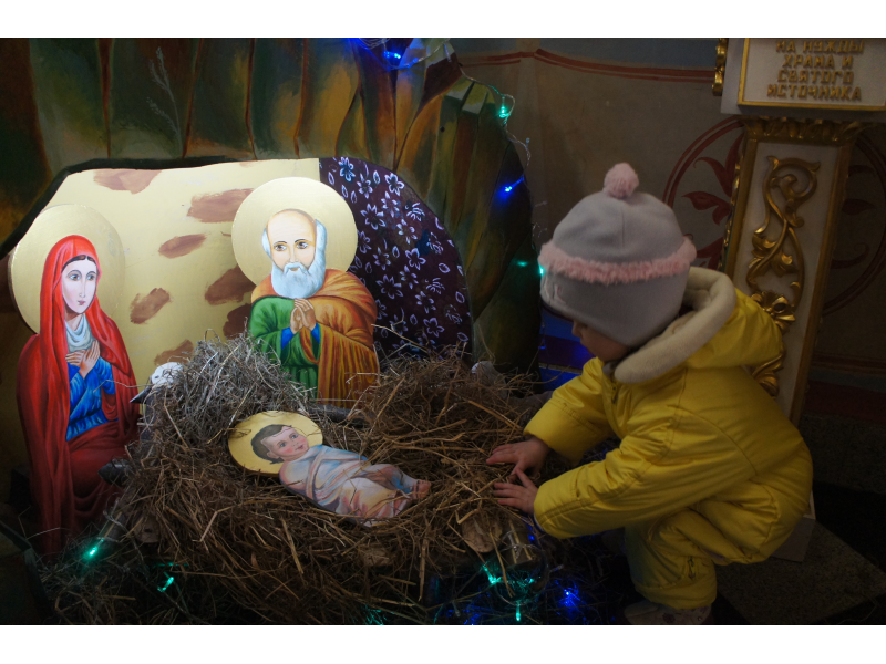 Во время царствования в Иудее Ирода, который был под властью Рима, римский император Август издал повеление сделать в подчиненной ему земле иудейской всенародную перепись. Каждый иудей должен был записаться там, где жили его предки. Иосиф и Дева Мария происходили из рода Давидова и потому отправились из Назарета в город Давидов Вифлеем. Придя в Вифлеем, они не могли найти себе места в доме, в гостинице, и остановились за городом, в пещере, куда пастухи загоняли скот в ненастную погоду. В этой пещере ночью у Пресвятой Девы Марии родился Младенец – Сын Божий, Христос Спаситель мира. Она спеленала Божественного Младенца и положила Его в ясли, куда кладут корм для скота. (Прот. Серафим Слободской “Закон Божий”)
