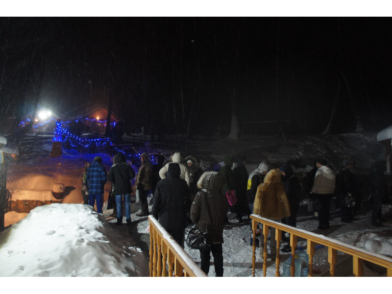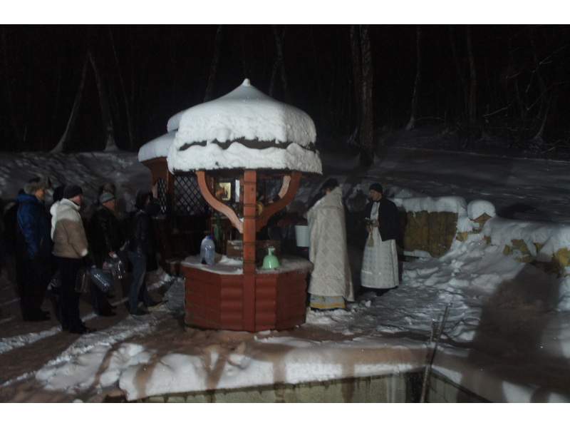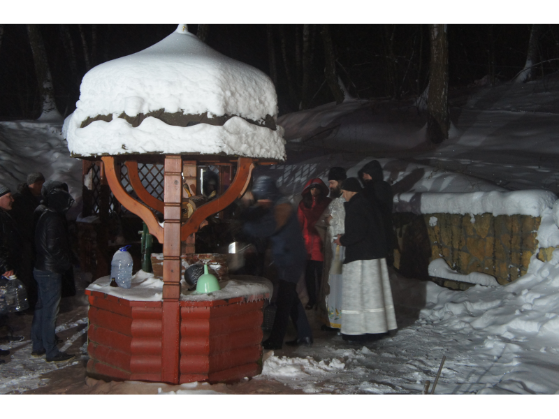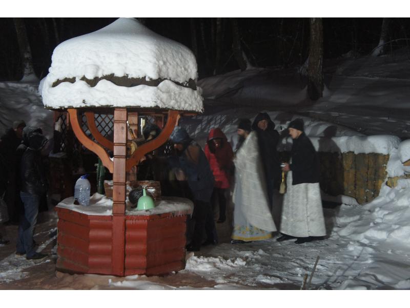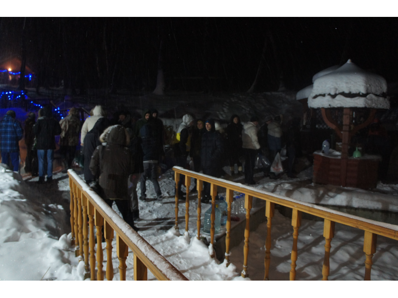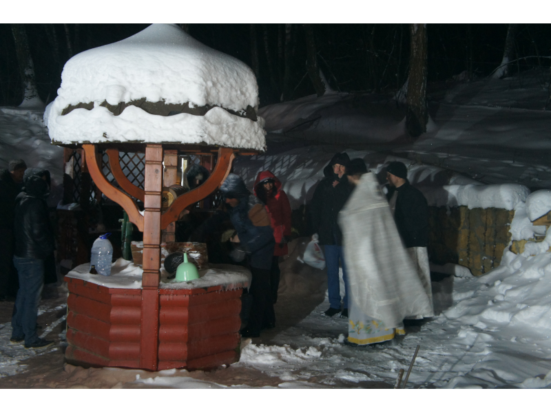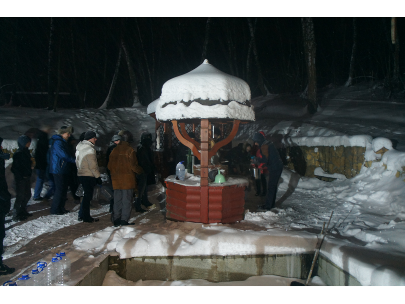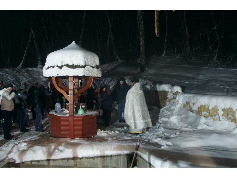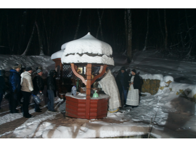 После Литургии с хоругвями и праздничными песнопениями, весь приход направился на источник "Неупиваемая чаша", где батюшка отслужил Чин Великого освящения воды. Люди смогли набрать крещенской воды, а самые смелые погрузиться в купелях в воды источника. Была раскинута большая походная палатка в которой каждый мог выпить вкусного чая с малиной.