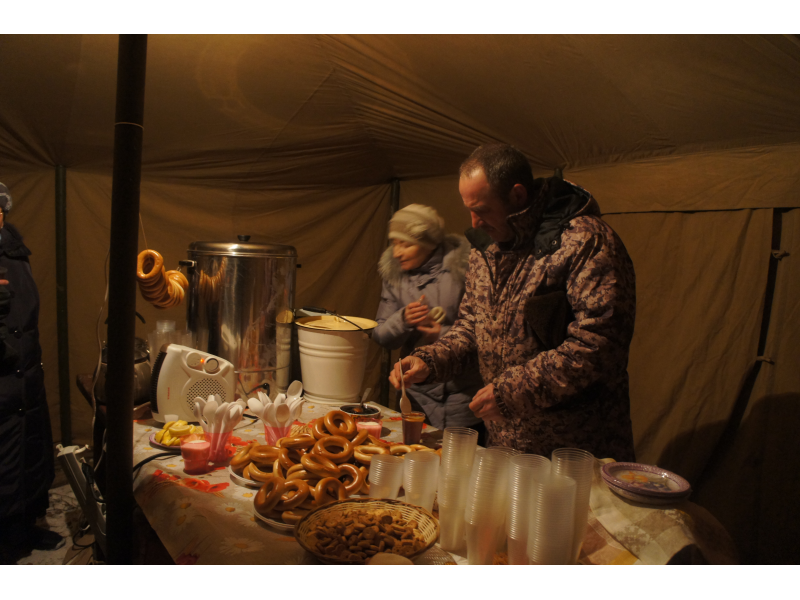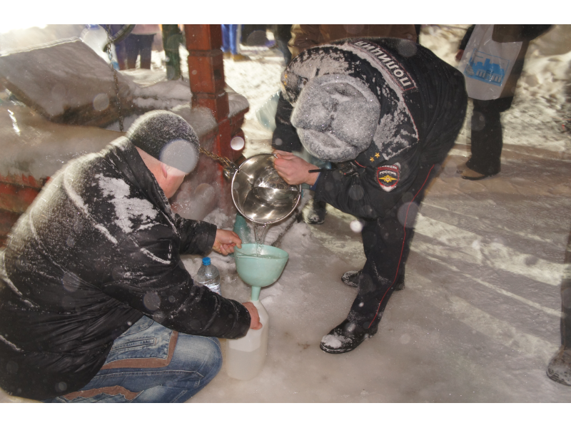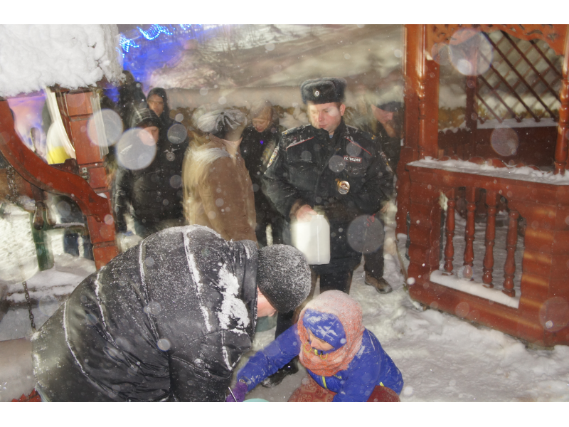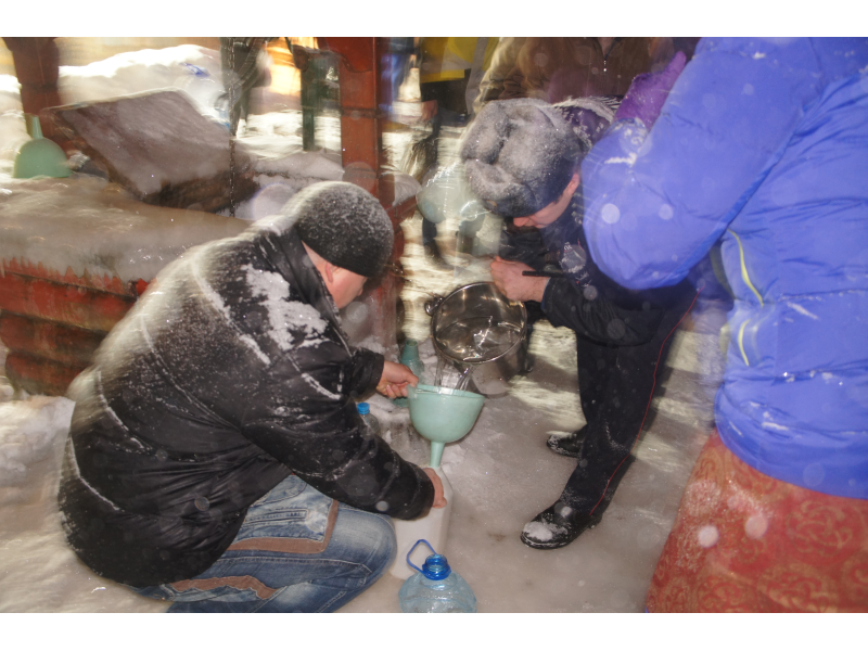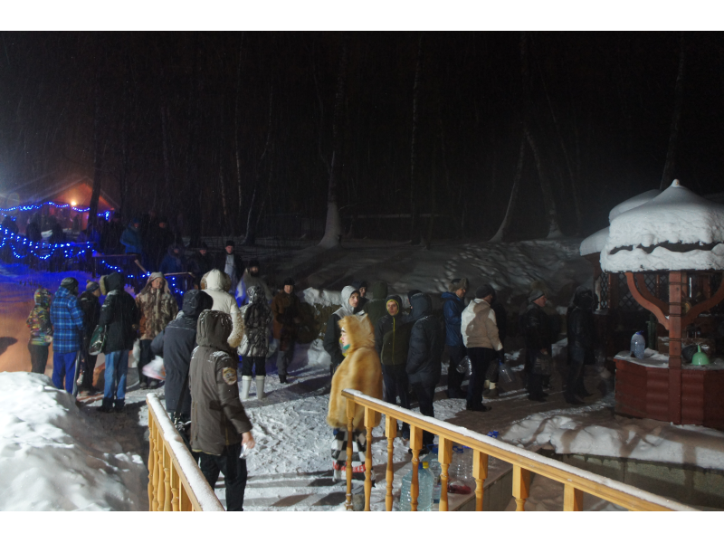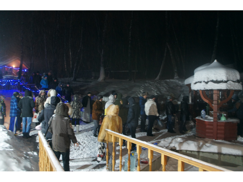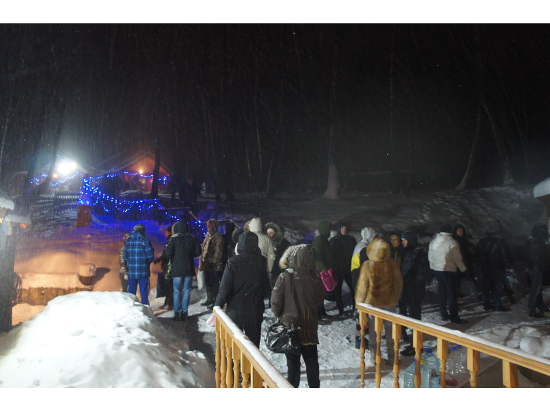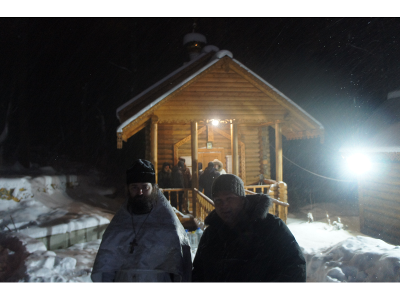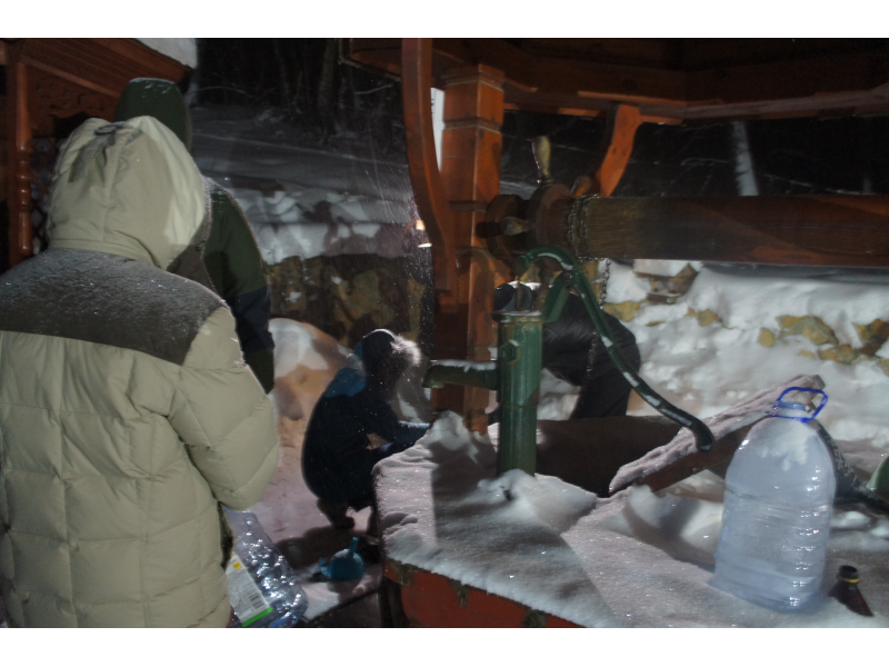 После Литургии с хоругвями и праздничными песнопениями, весь приход направился на источник "Неупиваемая чаша", где батюшка отслужил Чин Великого освящения воды. Люди смогли набрать крещенской воды, а самые смелые погрузиться в купелях в воды источника. Была раскинута большая походная палатка в которой каждый мог выпить вкусного чая с малиной.
