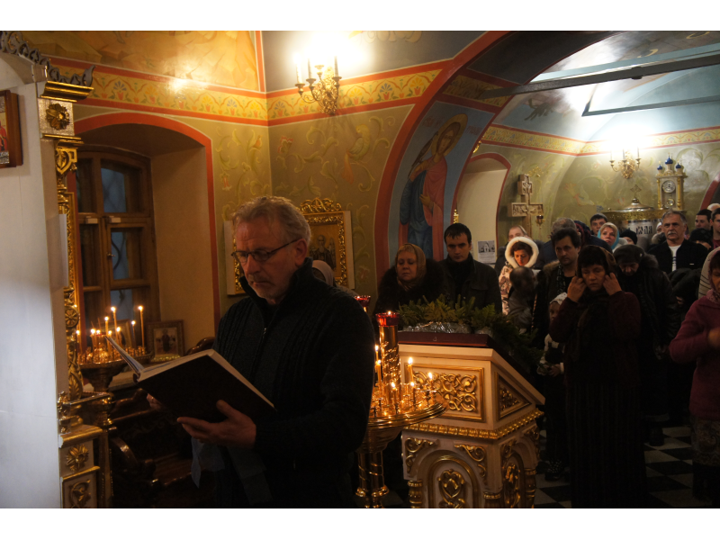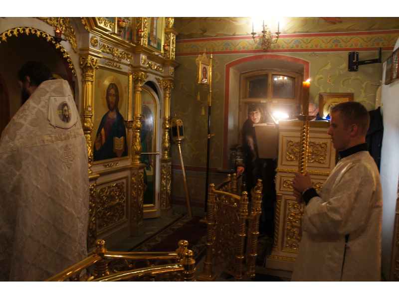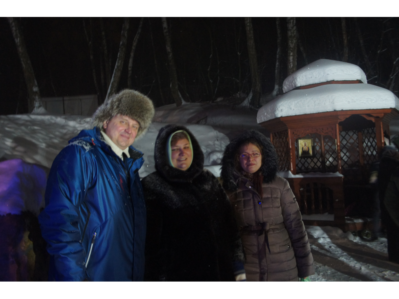 19 января в 00.00 - началась Божественная Литургия на которой с пением праздничного тропаря: "Во Иордане крещающуся Тебе, Господи, Троическое явися поклонение: Родителев бо глас свидетельствоваше Тебе, возлюбленнаго Тя Сына именуя: и Дух в виде голубине извествоваше словесе утверждение: явлейся, Христе Боже, и мир просвещей, слава Тебе." - мы ощутили радость праздника - Крещения Господня.