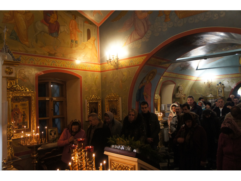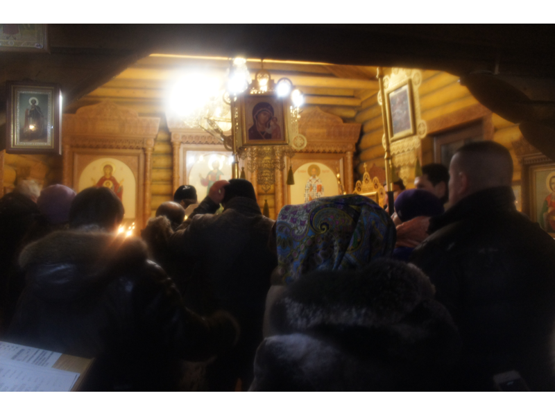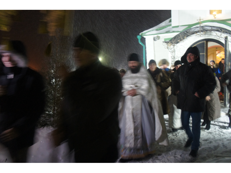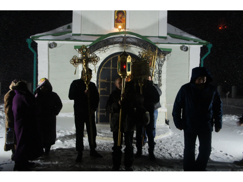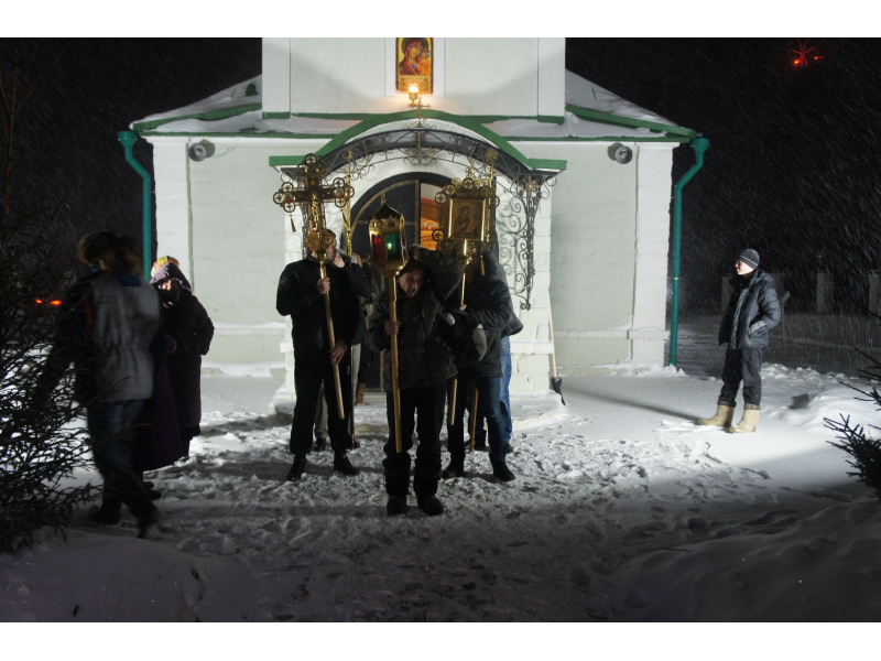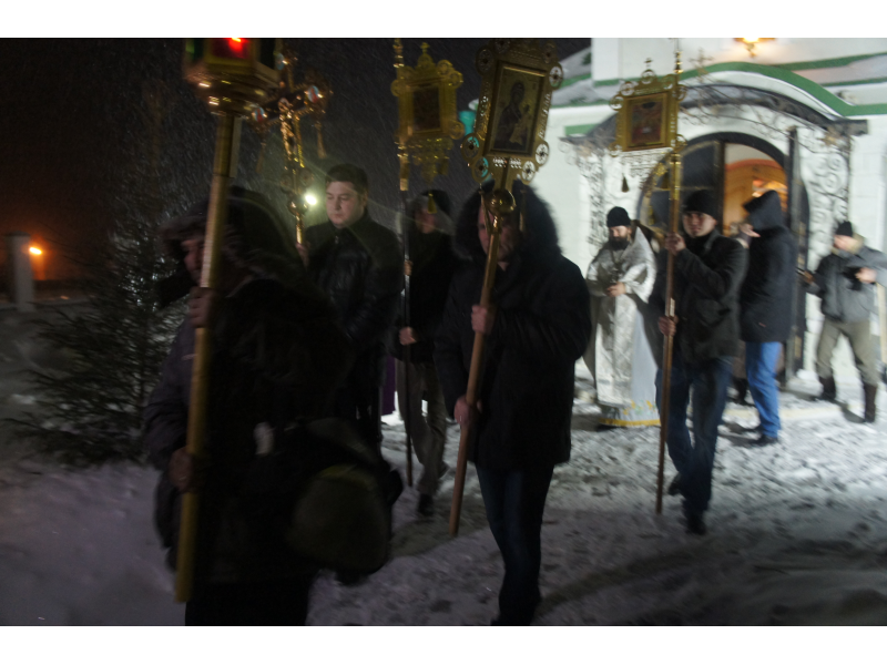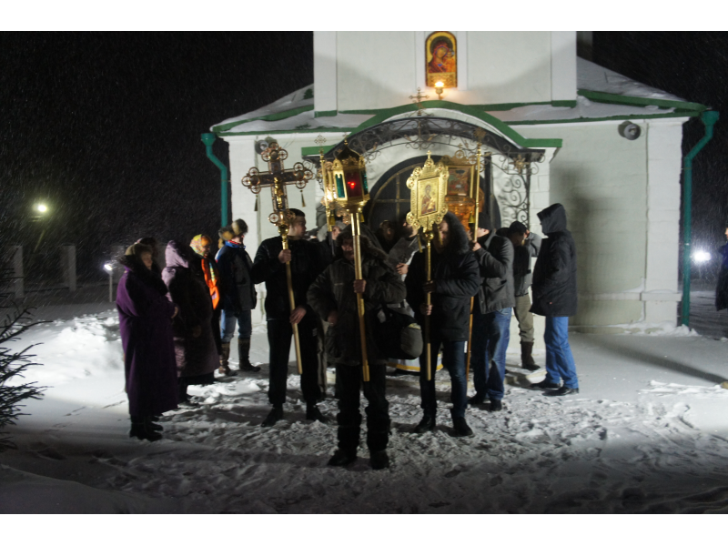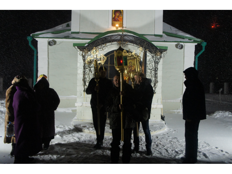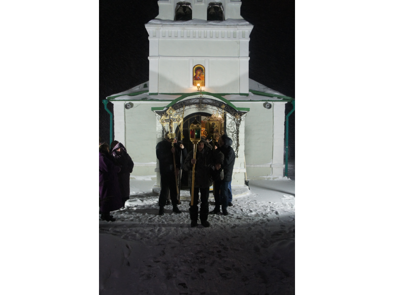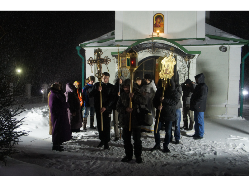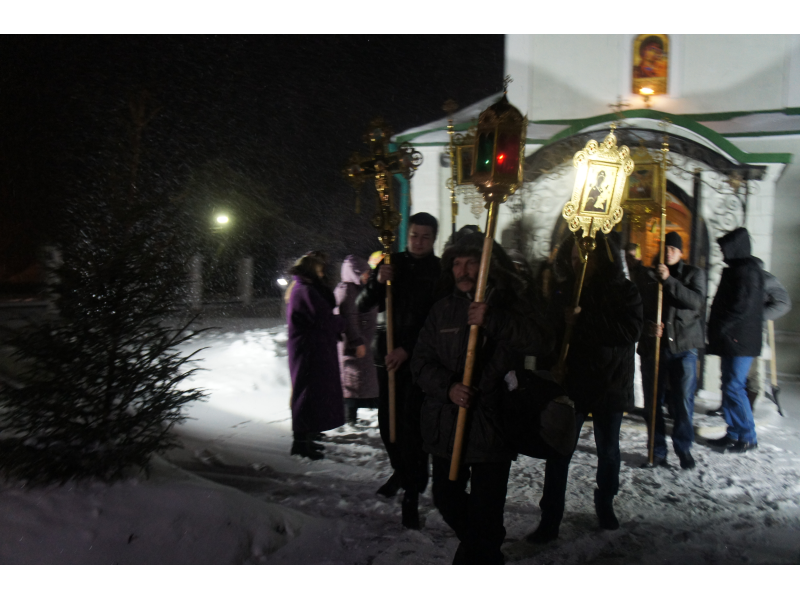 18 января в 8.00 в Казанском храме был отслужен водосвятный молебен, в 18.00 - прихожане в Крещенский Сочельник направились на Всенощное бдение.
