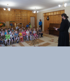 Батюшка рассказал библейские истории о Сотворении мира, о Православных Праздниках, о святых мучениках и их предстательстве за нас перед Богом, а также ответил на понятные в этом возрасте для детей вопросы : «а почему?...».