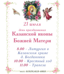Приглашаем всех 21 июля на день празднования Казанской иконы Божией Матери!