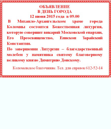 Божественная литургия в День города состоится в Михаило-Архангельском храме! А не в Успенском Соборе, как ошибочно сообщают СМИ!