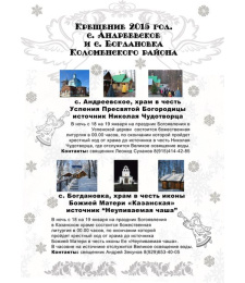 18 января 2015г. начало Всенощного бдения в 21.30. В 23.00 исповедь, в 00.00 Божественная Литургия.