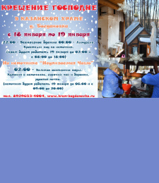 С 18 по 19 января в храме 22.00 - Всенощное бдение, 00.00- Литургия, крестный ход на источник, 02.00- Великое освящение воды на источнике, купания, горячий чай и баранки.