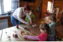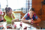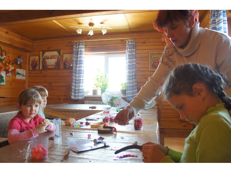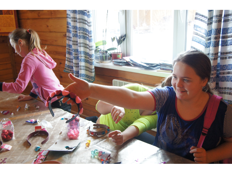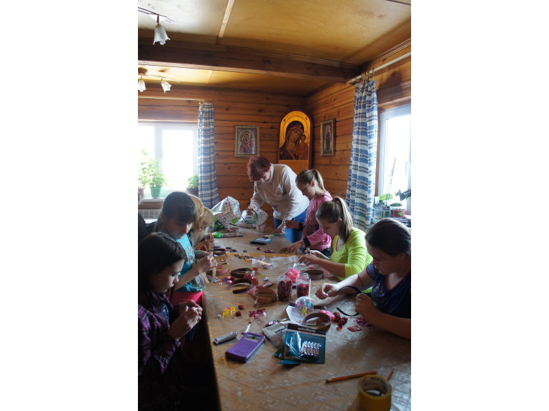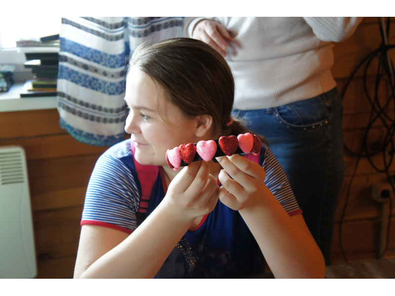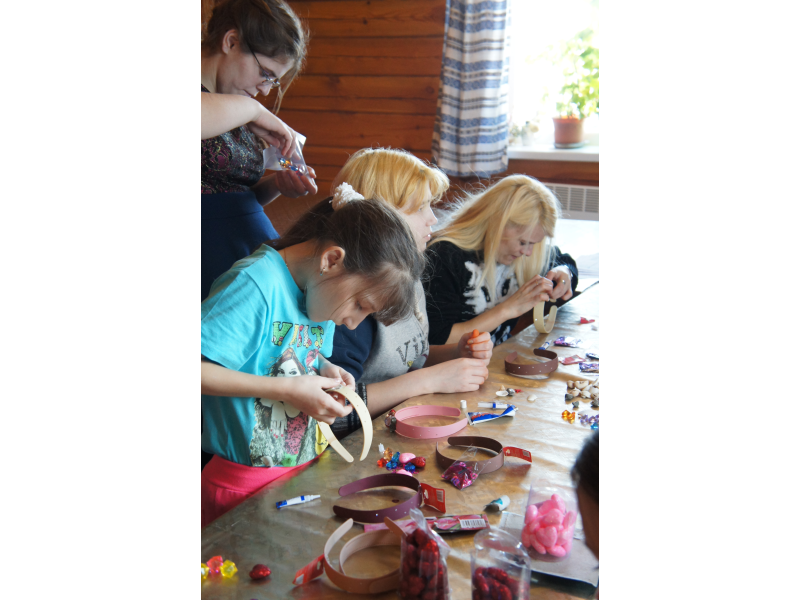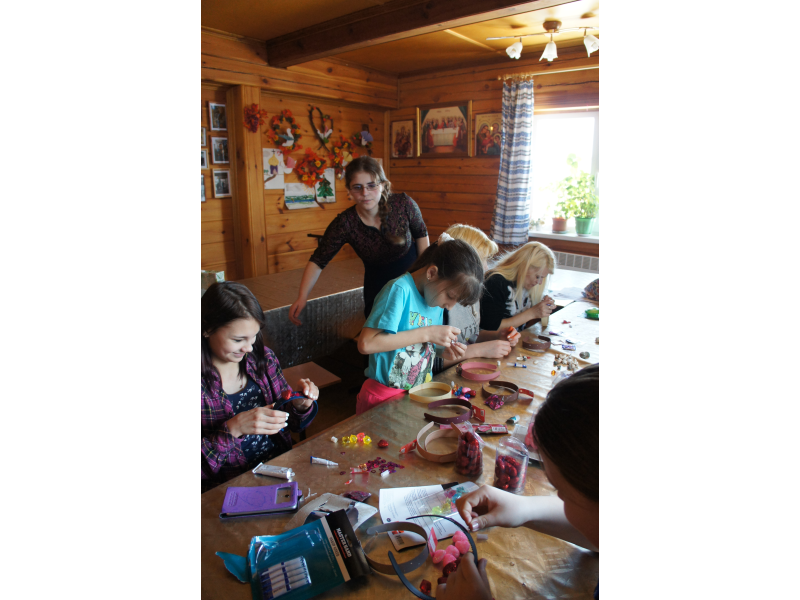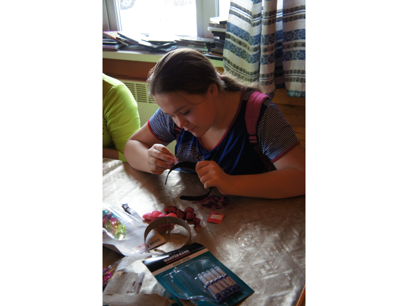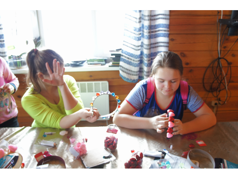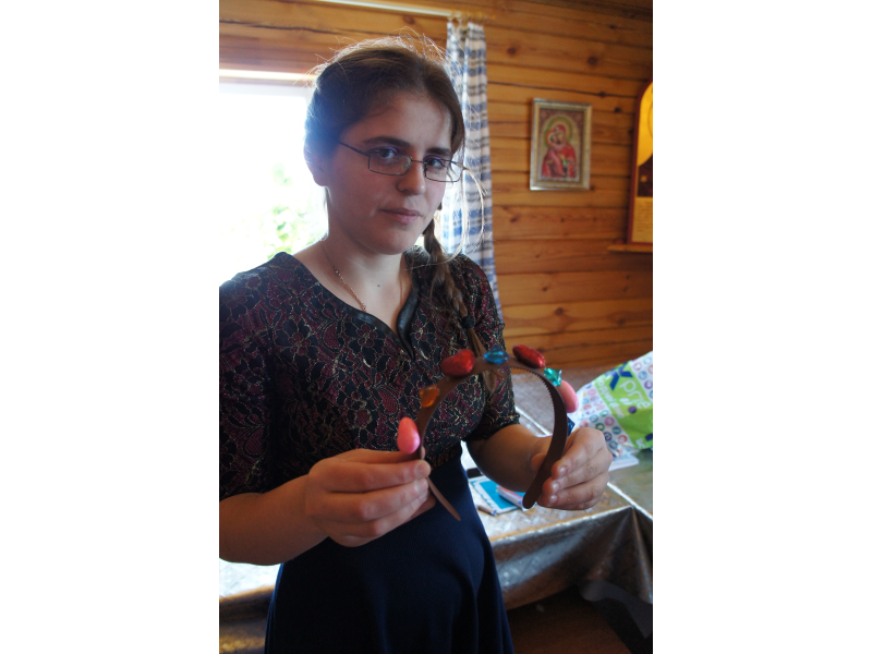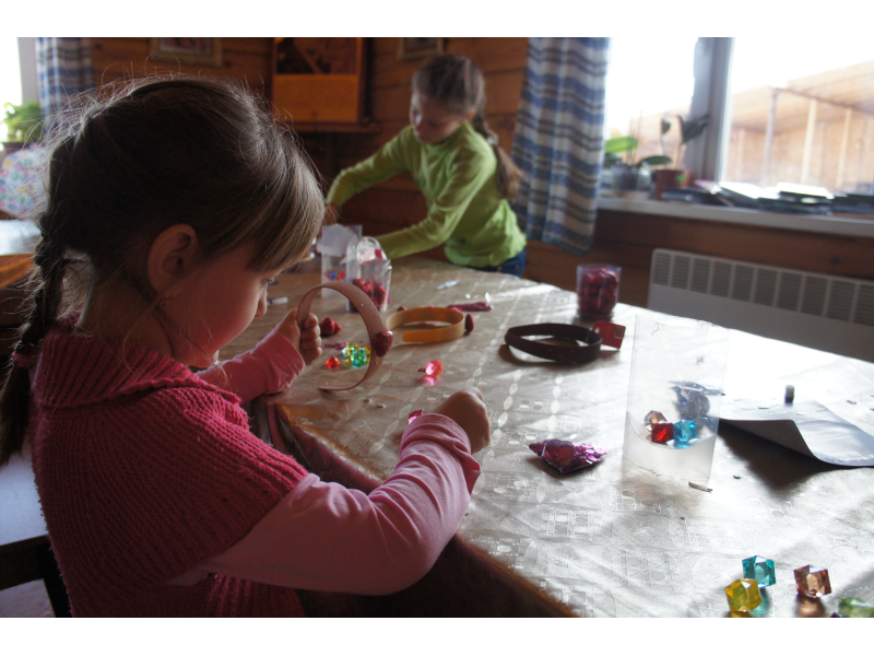 Также в творческой мастерской под руководством Оксаны младшая и старшая группа готовили сувениры для мам и сестренок - головное украшение своими руками. Младшая группа под руководством начинающего педагога Ирины занималась созданием из цветной бумаги красочных аппликаций.
