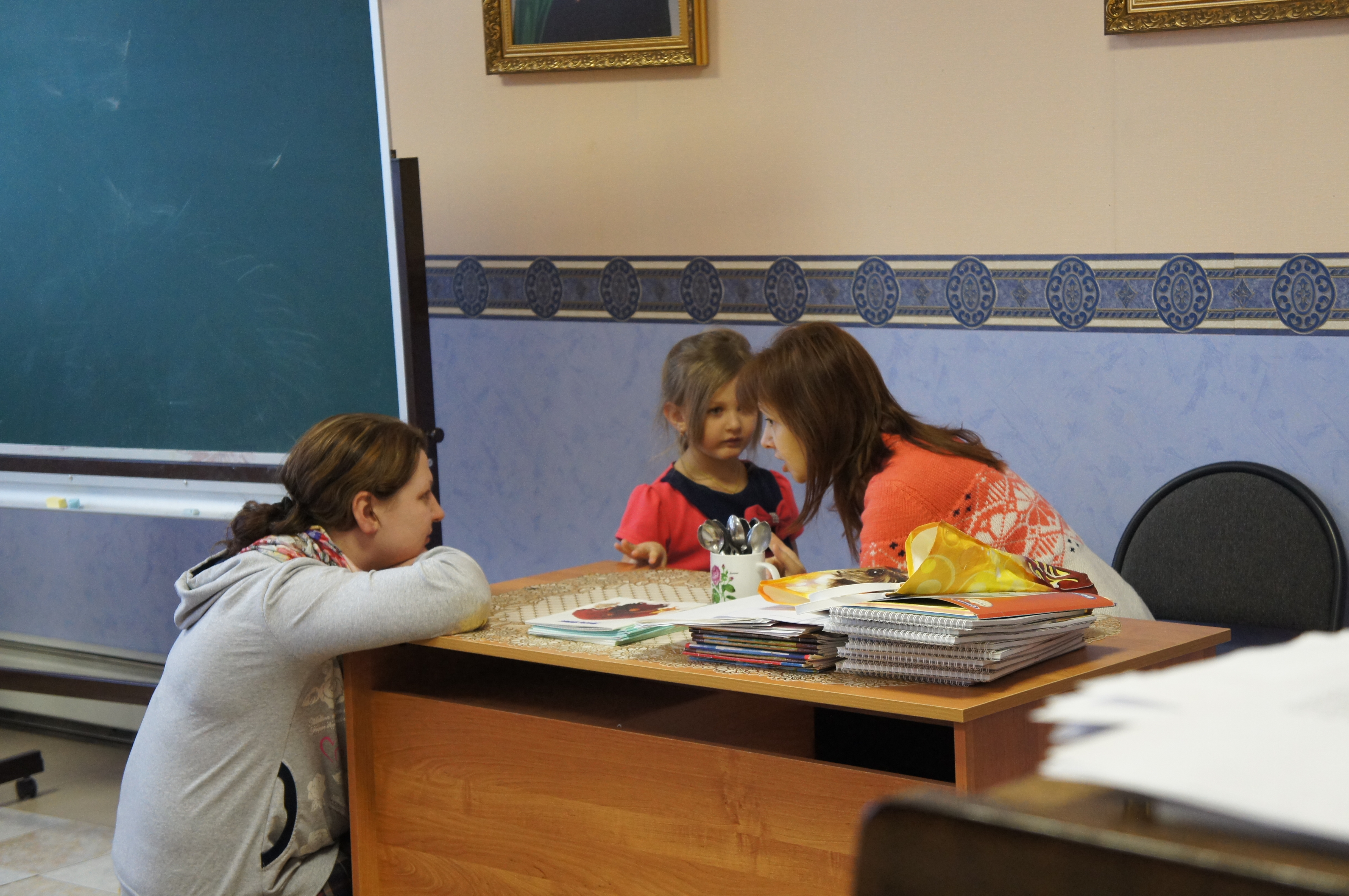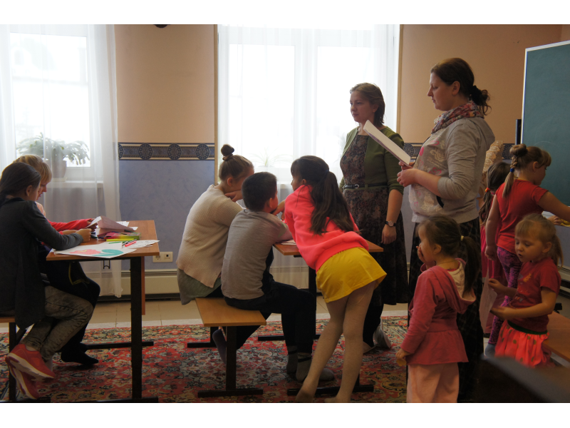 День Матери - радостный день, когда дети еще раз говорят своим мамочкам о любви к ним. В этот день в воскресную школу пришли мамы с детками, с ними провела беседу логопед-психолог, на тему индивидуального подхода к каждому ребенку. С педагогом по творчеству детки делали домики-открытки для мам. А в конце всех занятий прошла репетиция к предстоящему празднику.