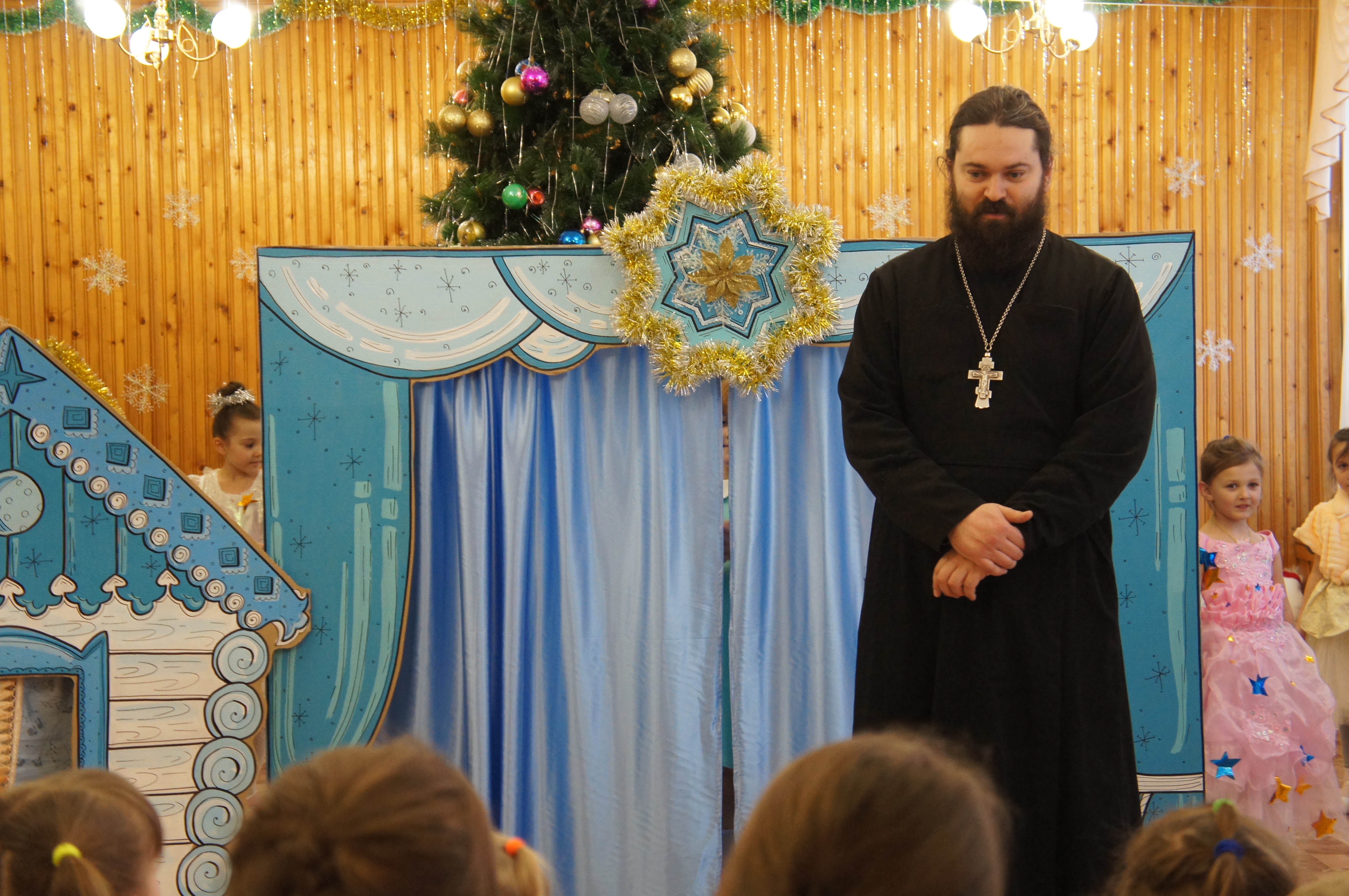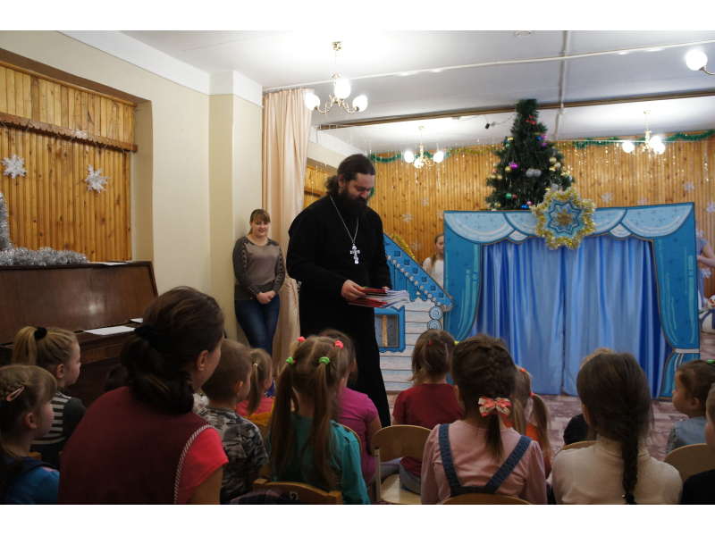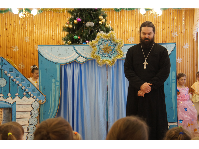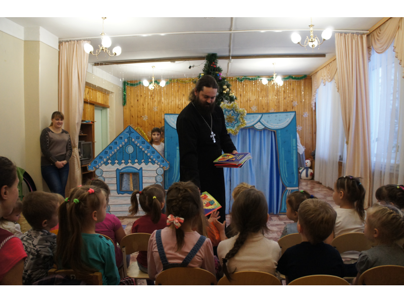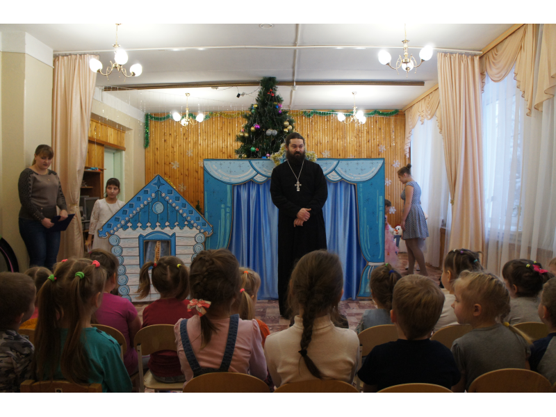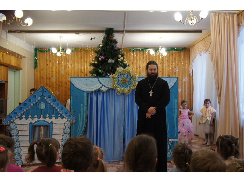 Студия праздников "Оранжевое небо" и воскресная школа "Ангел мой" во главе с настоятелем Казанского храма отцом Андреем Зекуновым поздравили воспитанников детского садика "Светлячок" поселка Проводник с праздником Рождества Христова.
