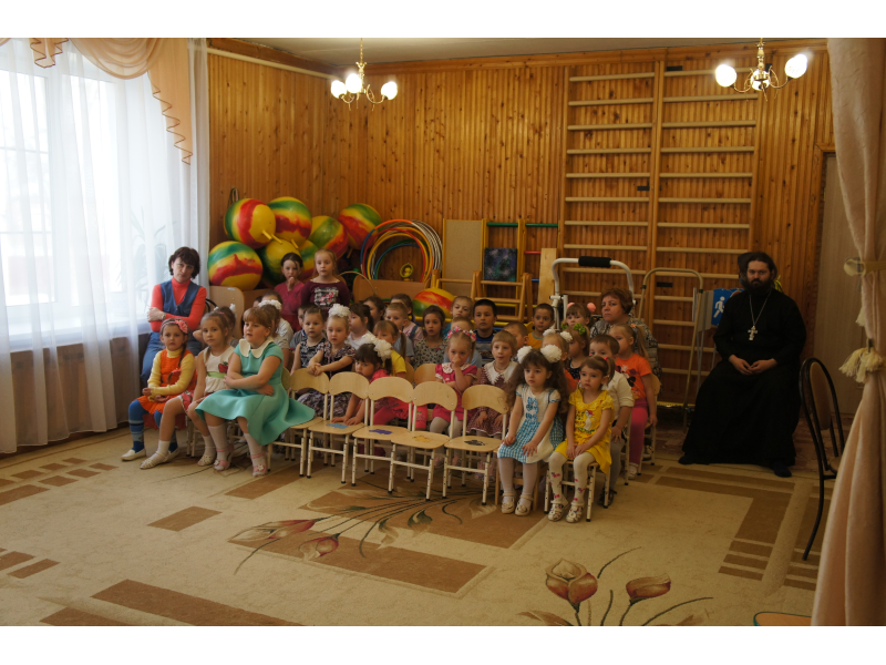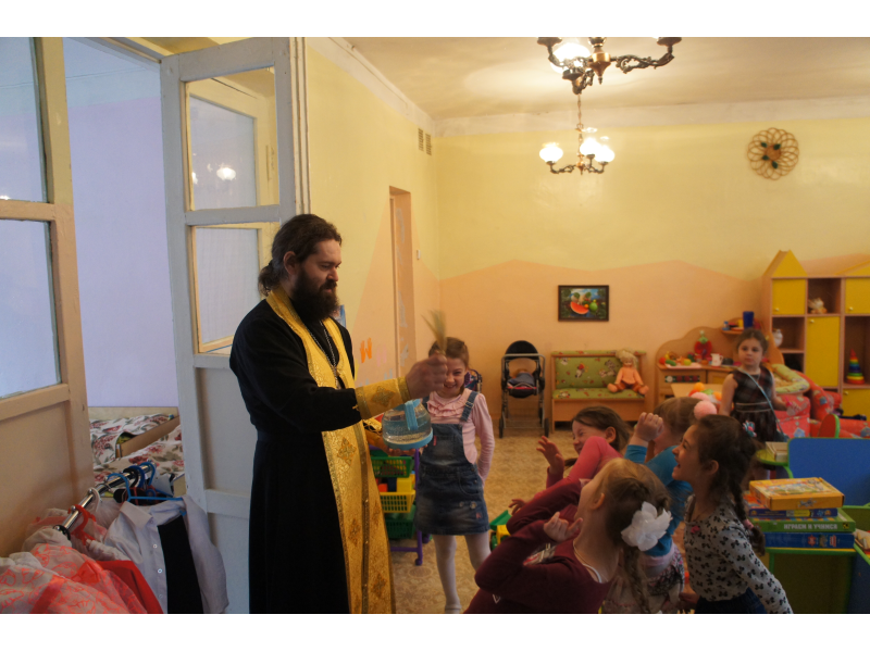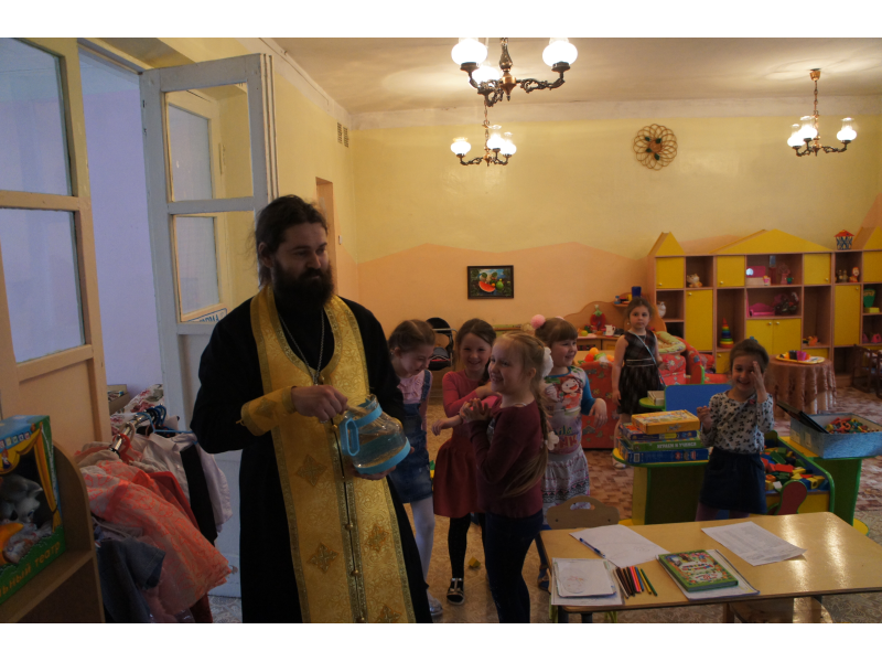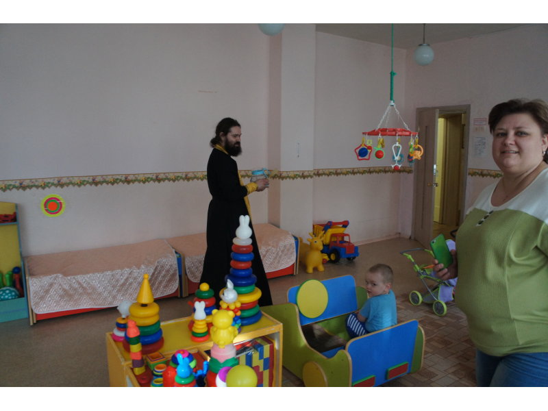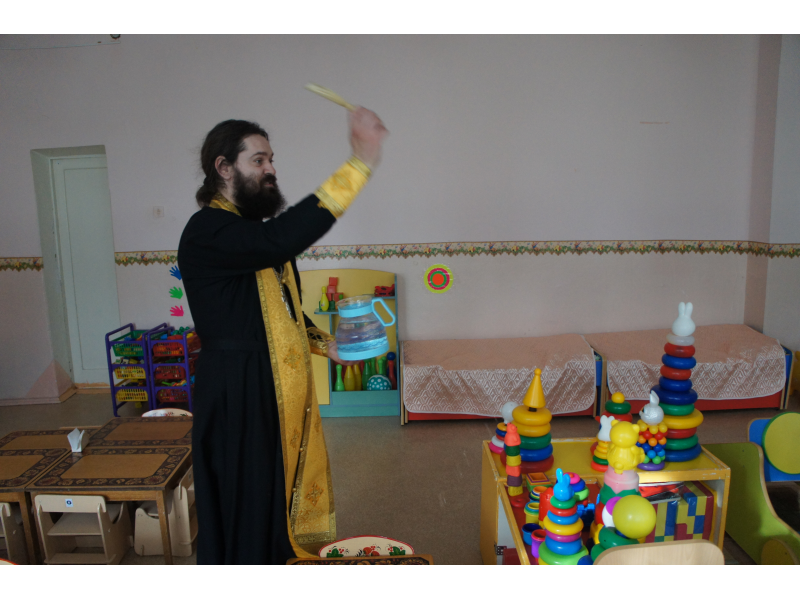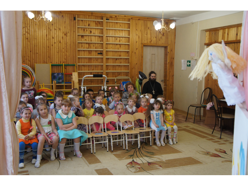 Сегодня воскресная школа "Ангел мой" во главе с отцом Андреем посетила детский сад №18 "Светлячок" п. Проводник. Дети показали пасхальный спектакль, батюшка подарил воспитанникам книжки "Зернышко", а также освятил помещения садика.