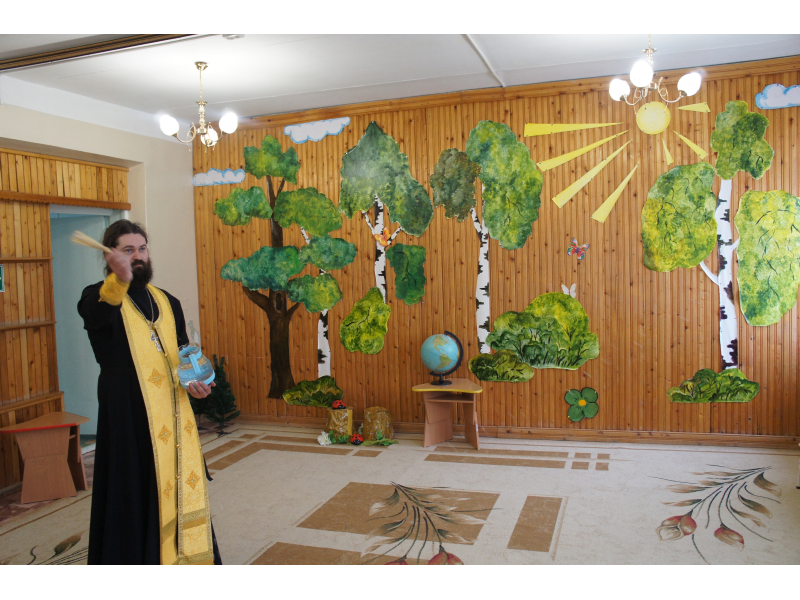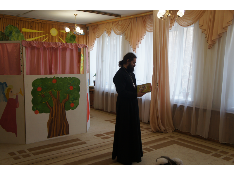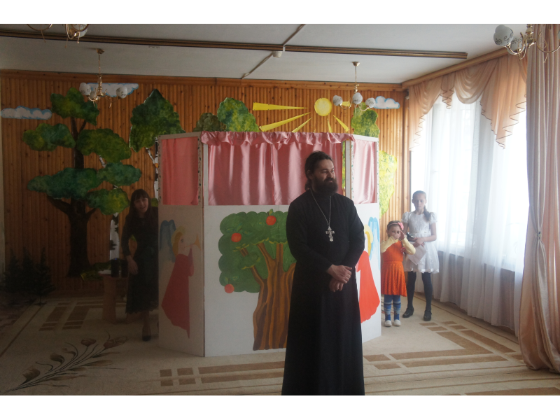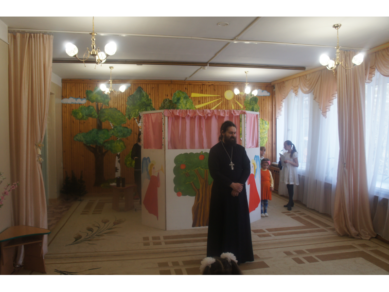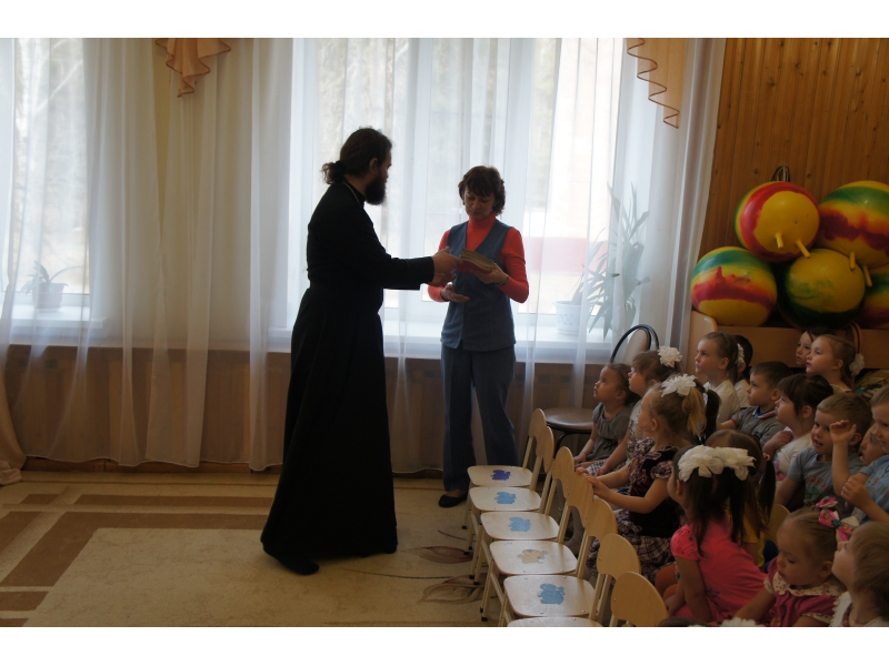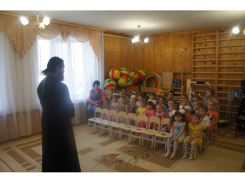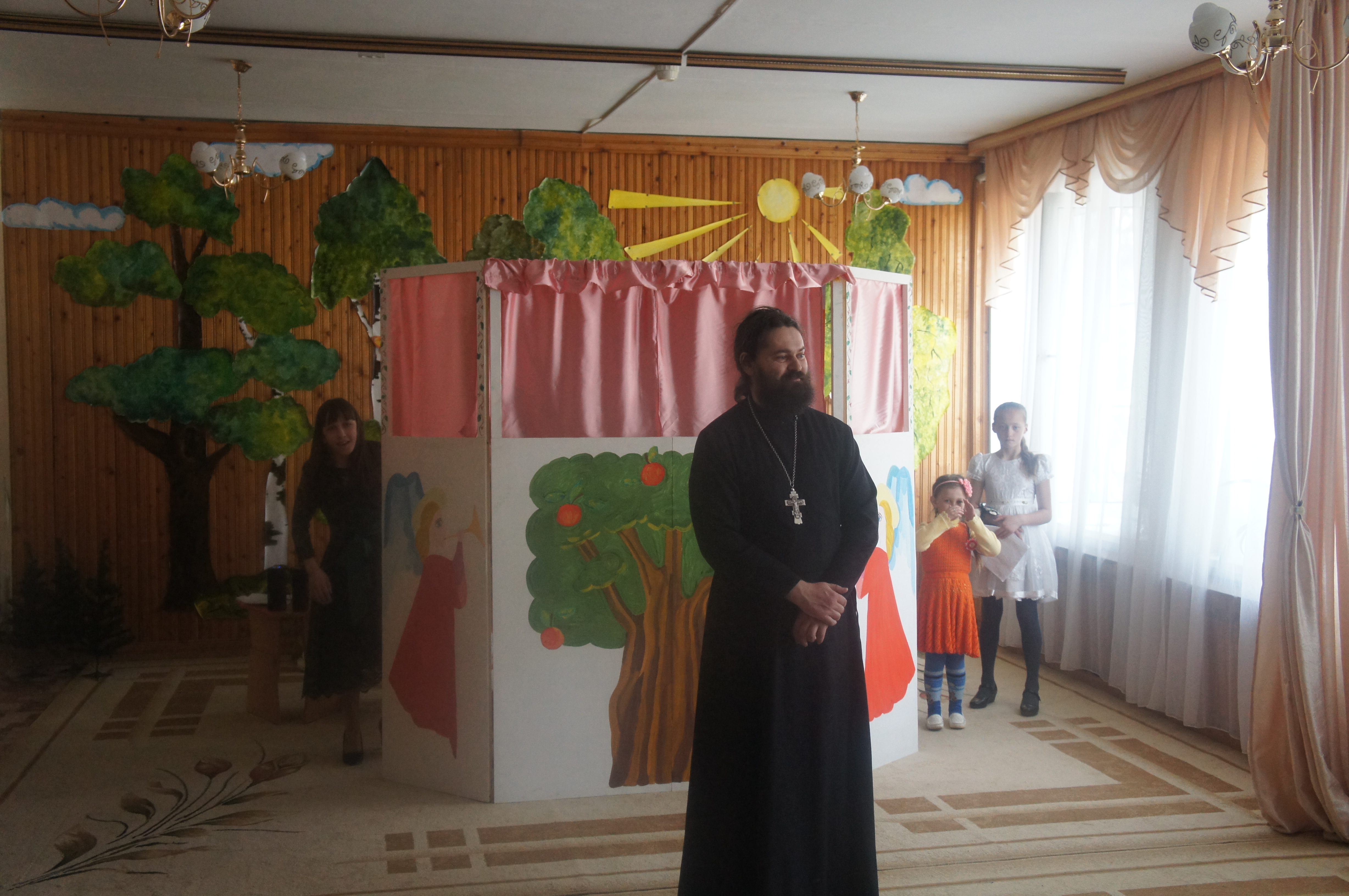 Сегодня воскресная школа "Ангел мой" во главе с отцом Андреем посетила детский сад №18 "Светлячок" п. Проводник. Дети показали пасхальный спектакль, батюшка подарил воспитанникам книжки "Зернышко", а также освятил помещения садика.