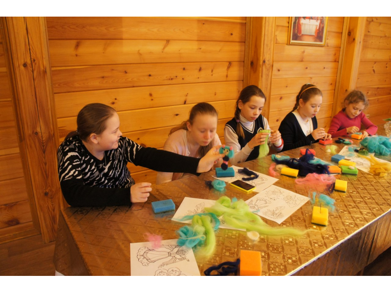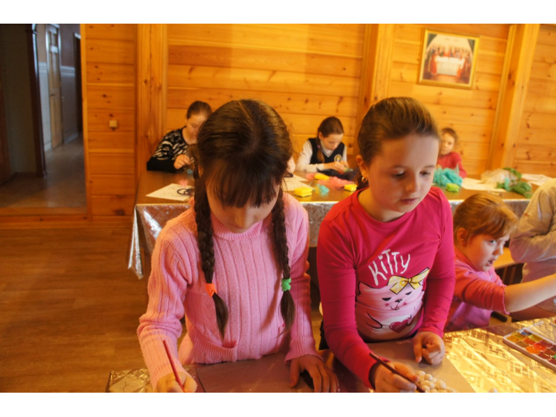 Урок в воскресной школе. Раскрашиваем поделки из соленого теста и делаем милых шерстяных ангелочков, а после играем в угадайку на тему - храм, иконы, святые.