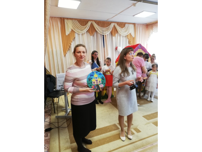 Сотрудники детского сада вручили ответные подарки для воскресной школы; аппликацию-храм, сделанный руками деток, цыпляток и самое интересное выступление маленьких воспитанников (об этом секрет, т.к. мы первые посмотрели этот номер, который будет презентовать в Конькобежном центре 18 мая).