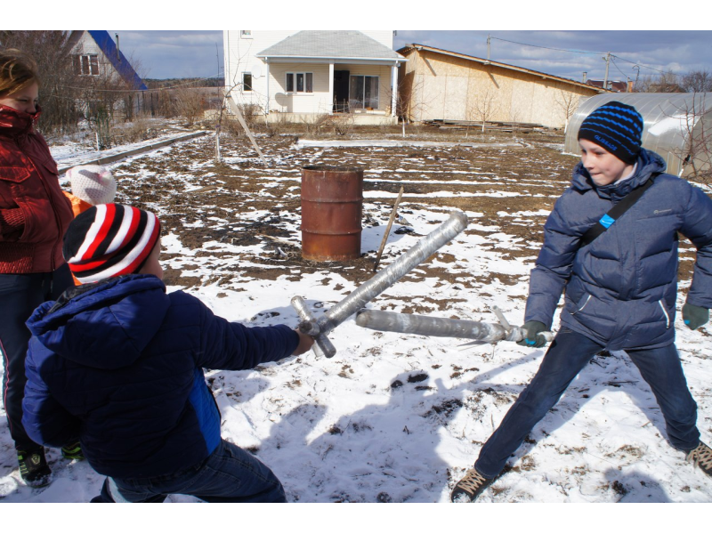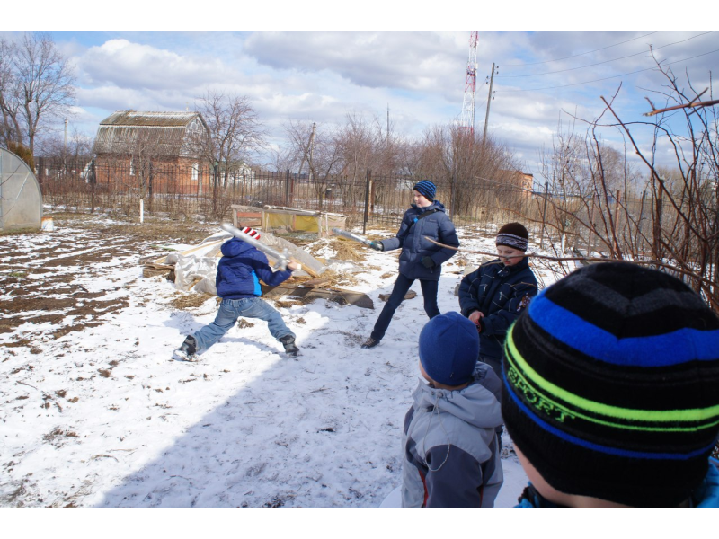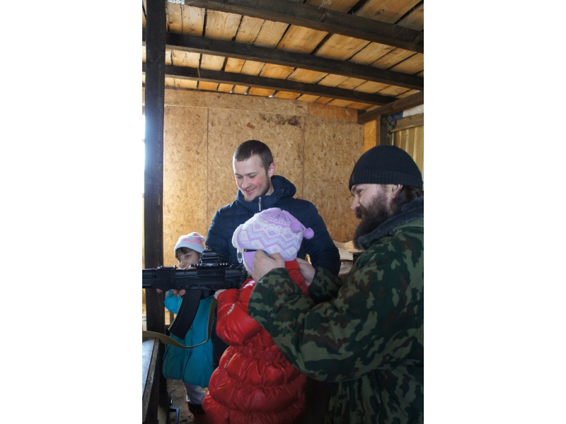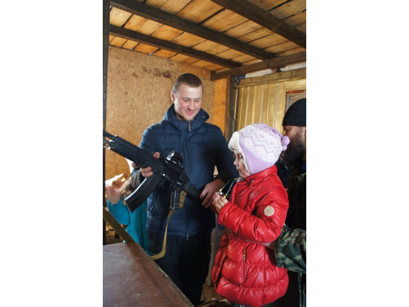 Каждый мужчина должен уметь защищать свою Родину и своих ближних: маму, папу, дедушку, сестренку. Все это подразумевается: если любишь ближних своих, то должен быть готов положить за них душу. Ведь сказано, что нет выше той любви. Но ведь ты должен уметь защитить, уметь положить душу свою. Наши преподаватели Владимир и Андрей, вместе с о.Андреем, объяснили ребятам, что значит быть настоящим защитниками своего Отечества. Владимир научил девчонок и мальчишек стрелять из автомата пульками по мишеням, а также развил навыки у ребят сражаться на мечах и щитах, безопасную конструкцию которых он придумал сам.