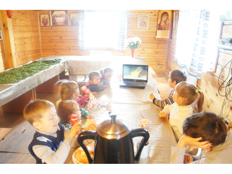 18 октября дети в воскресной школе, младшая группа - проходили такие понятия, как "Небесный покровитель", кто такие святые, и как важна их молитва перед Богом за нас, на уроке рисования дети делали аппликацию из цветов и разукрашивали ее красками, каждый цветочек предназначался, как подарок небесному покровителю, а также малыши смотрели отрывок мультика "Путешествие Серафимы".