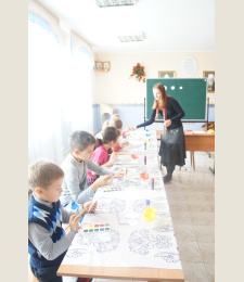 18 октября дети в воскресной школе, младшая группа - проходили такие понятия, как "Небесный покровитель", кто такие святые, и как важна их молитва перед Богом за нас, на уроке рисования дети делали аппликацию из цветов и разукрашивали ее красками...