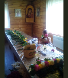 Воспитанники воскресной школы готовят букетики для прихожан на Троицу и украшают центральную икону.