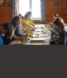дети занимались с логопедом-психологом на тему "Красота Божьего мира и что такое дружба". Также сегодня прошло занятие на тему добродетелей, каждый составлял свое "Дерево хороших качеств христианина", после все лакомились постной коврижкой.